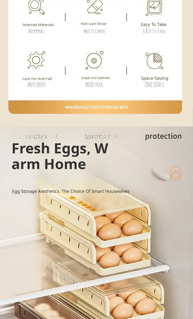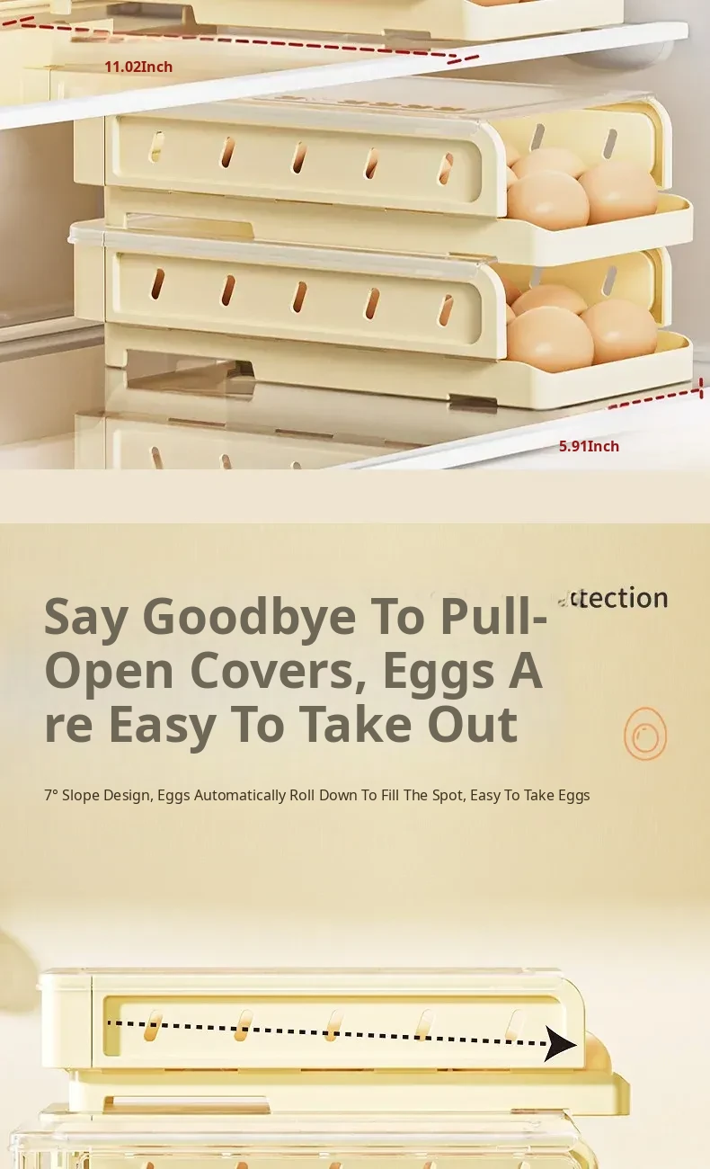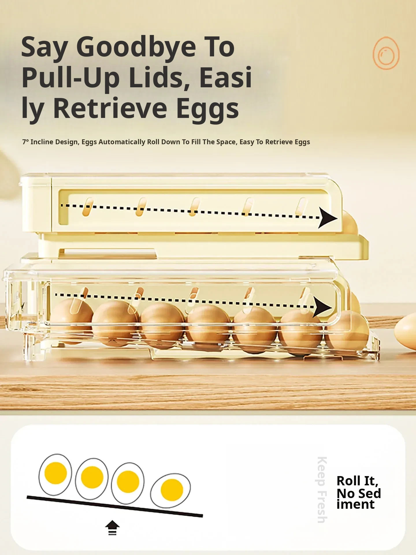 Egg Storage Box for Refrigerator - Automatic Rolling Egg Dispenser with Slanted Design for Easy Access - Food-Grade Freshness Keeper for Kitchen Side Door