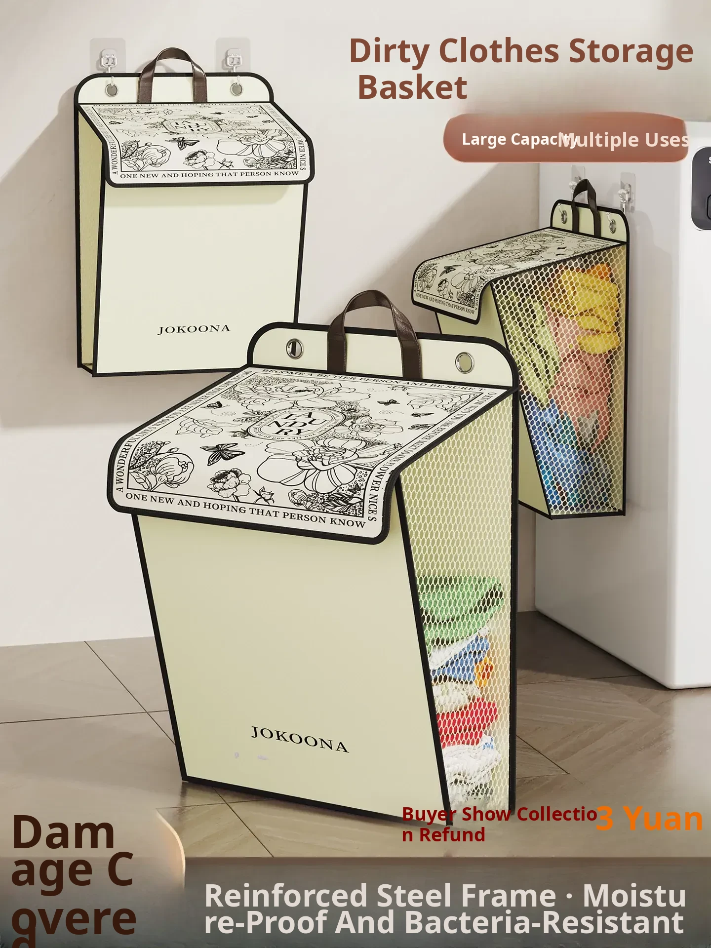 Extra Large✅[Wall-Mounted Folding Model] (Can Hold about 30 Pieces of Dirty Clothes/No Smell after Long-Term Storage)