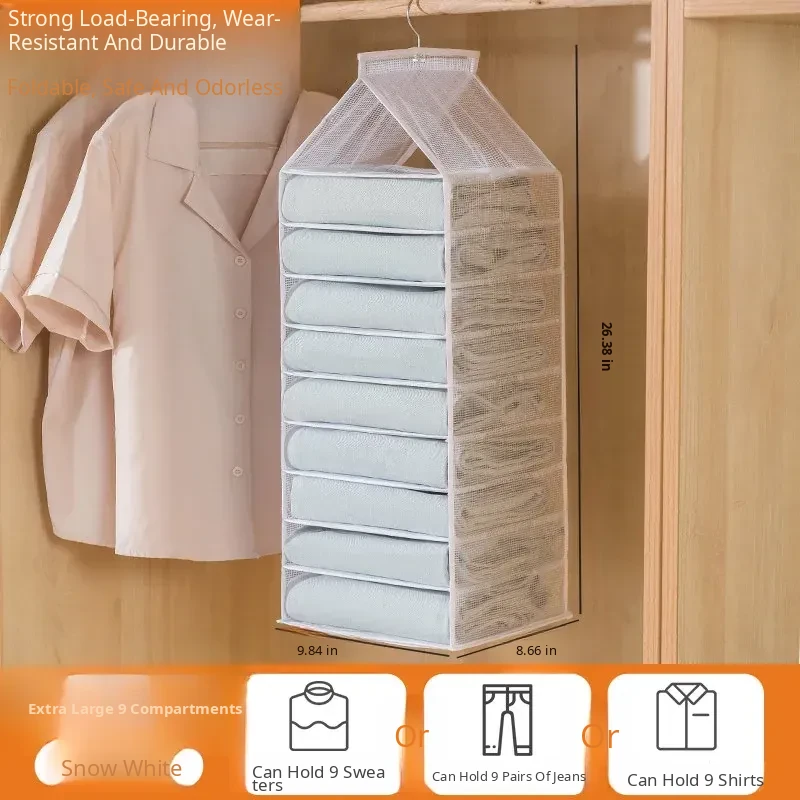 Upgraded and Enlarged 9 Compartments - Xueji White [Can Hold 9 Pieces of Sweaters/Jeans/Thin Jackets, Etc.]