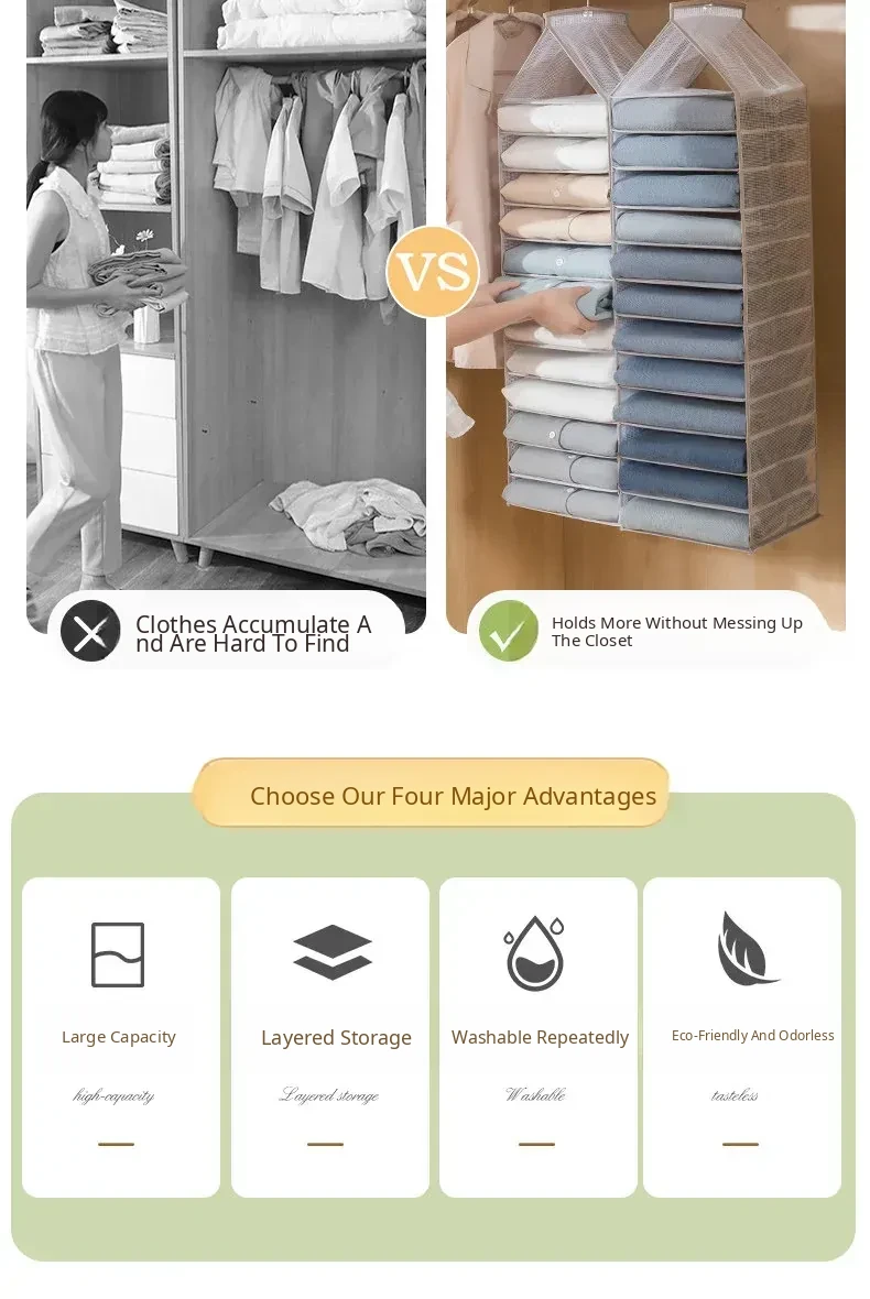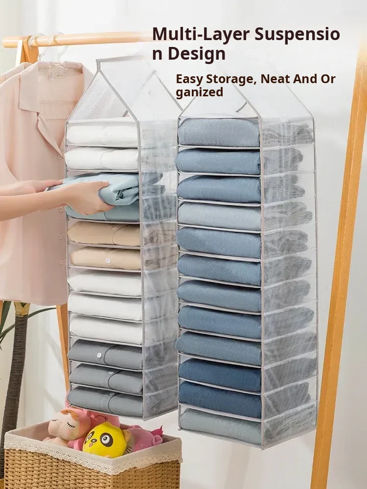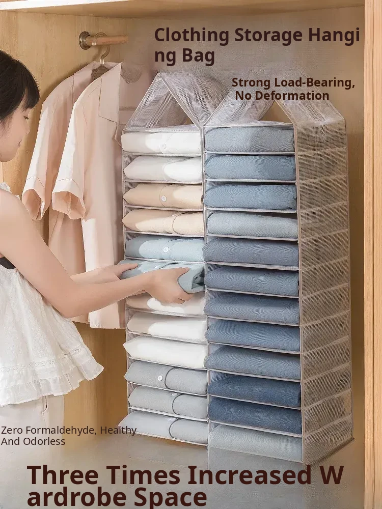Innovative Hanging Clothes Organizer - Tiered Fabric Storage Bag for Closet, Perfect for Pants and Garments Separation, Space-Saving Solution for Home Organization