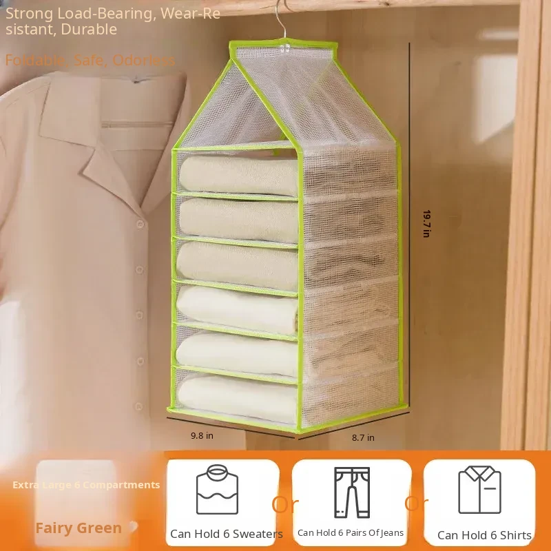 Upgraded to 6 Larger Compartments - Wizard Green [Can Hold 6 Pieces Each of Sweaters/Jeans/Thin Jackets, Etc.]