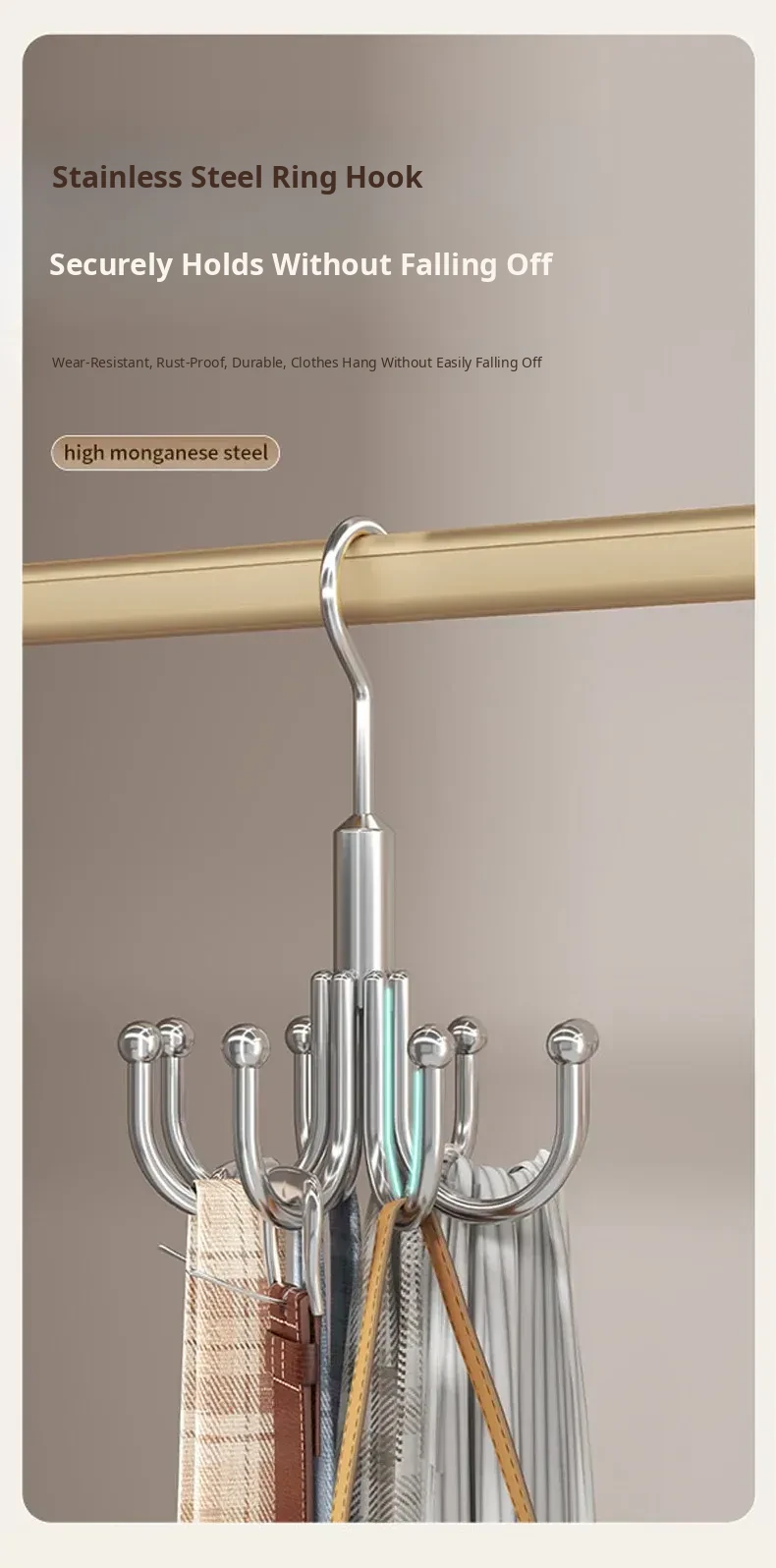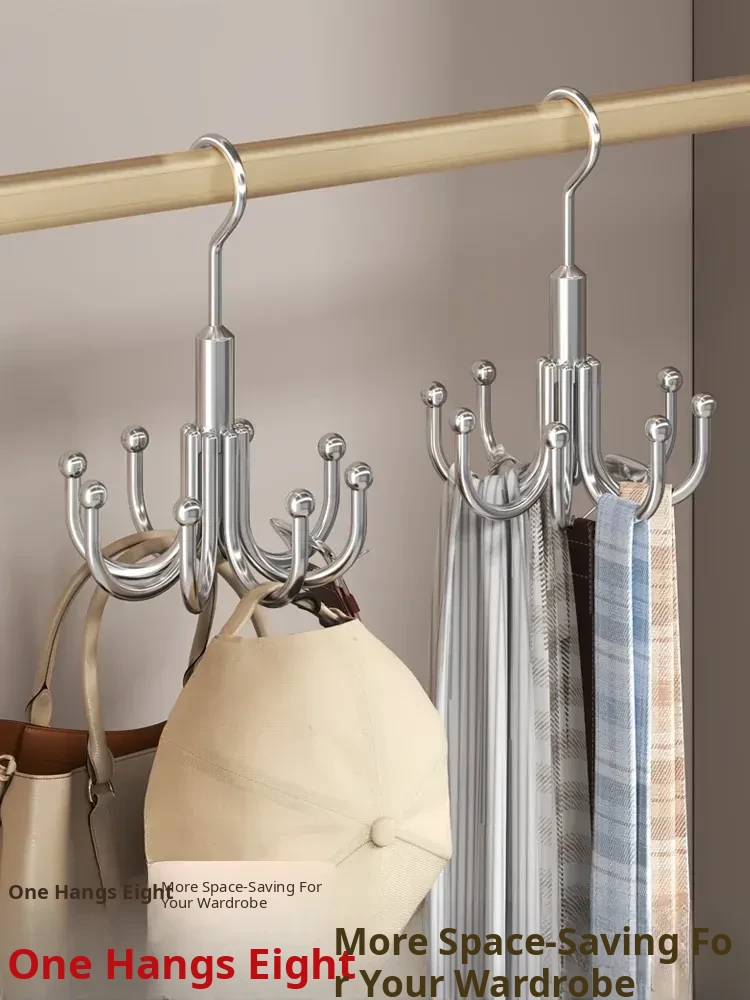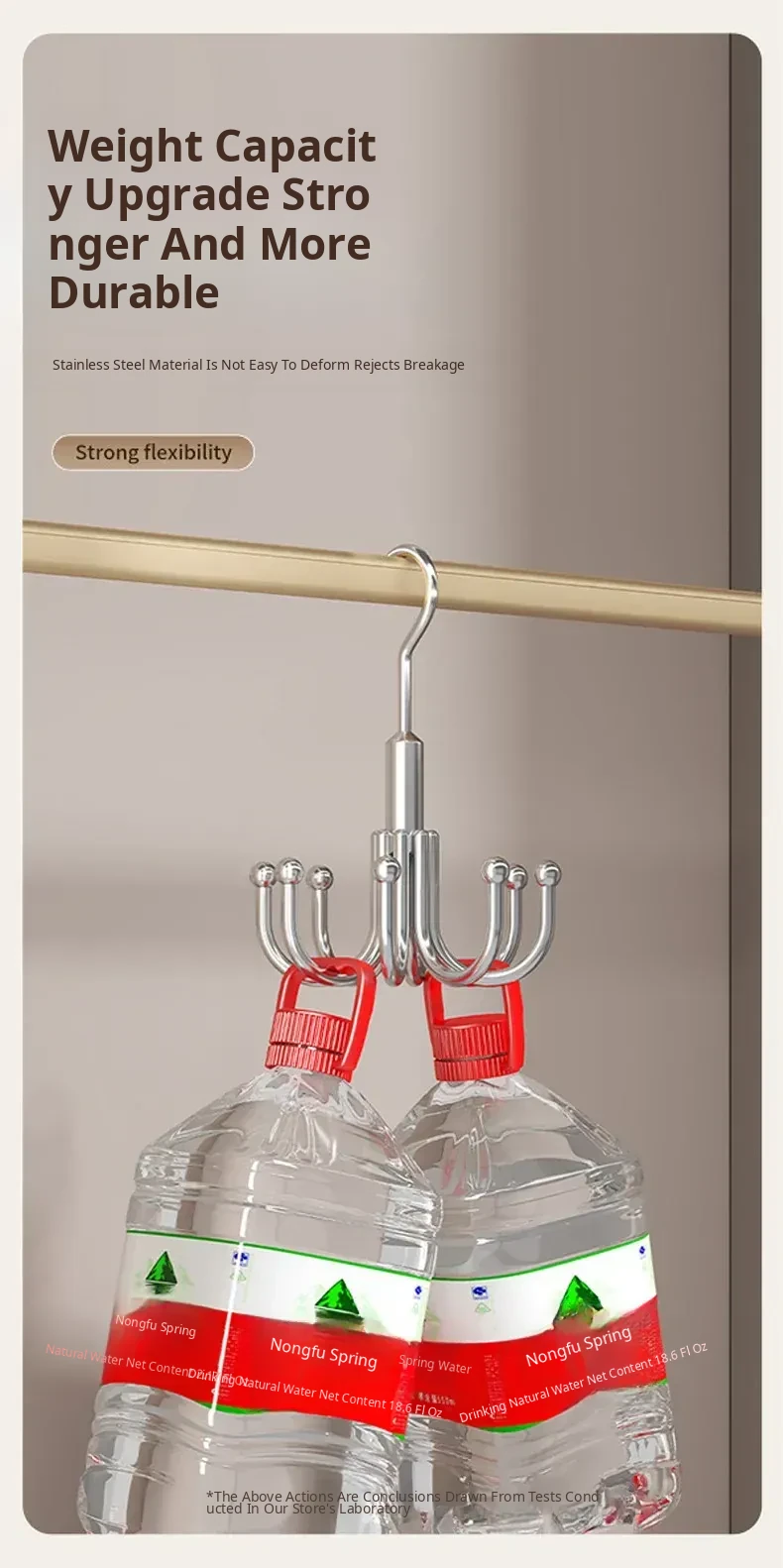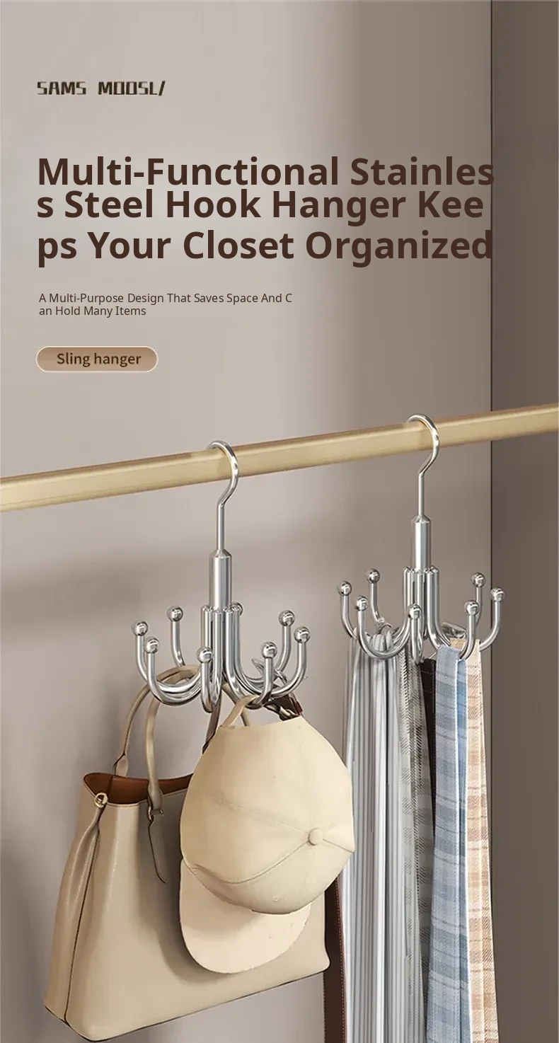 Stainless Steel Hook - No Drill Required, Multi-Functional Hanging Rack for Bags, Clothes, and Hats - Rotatable Storage Solution for Home Organization