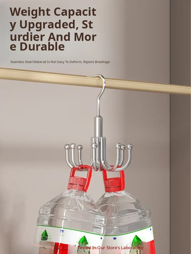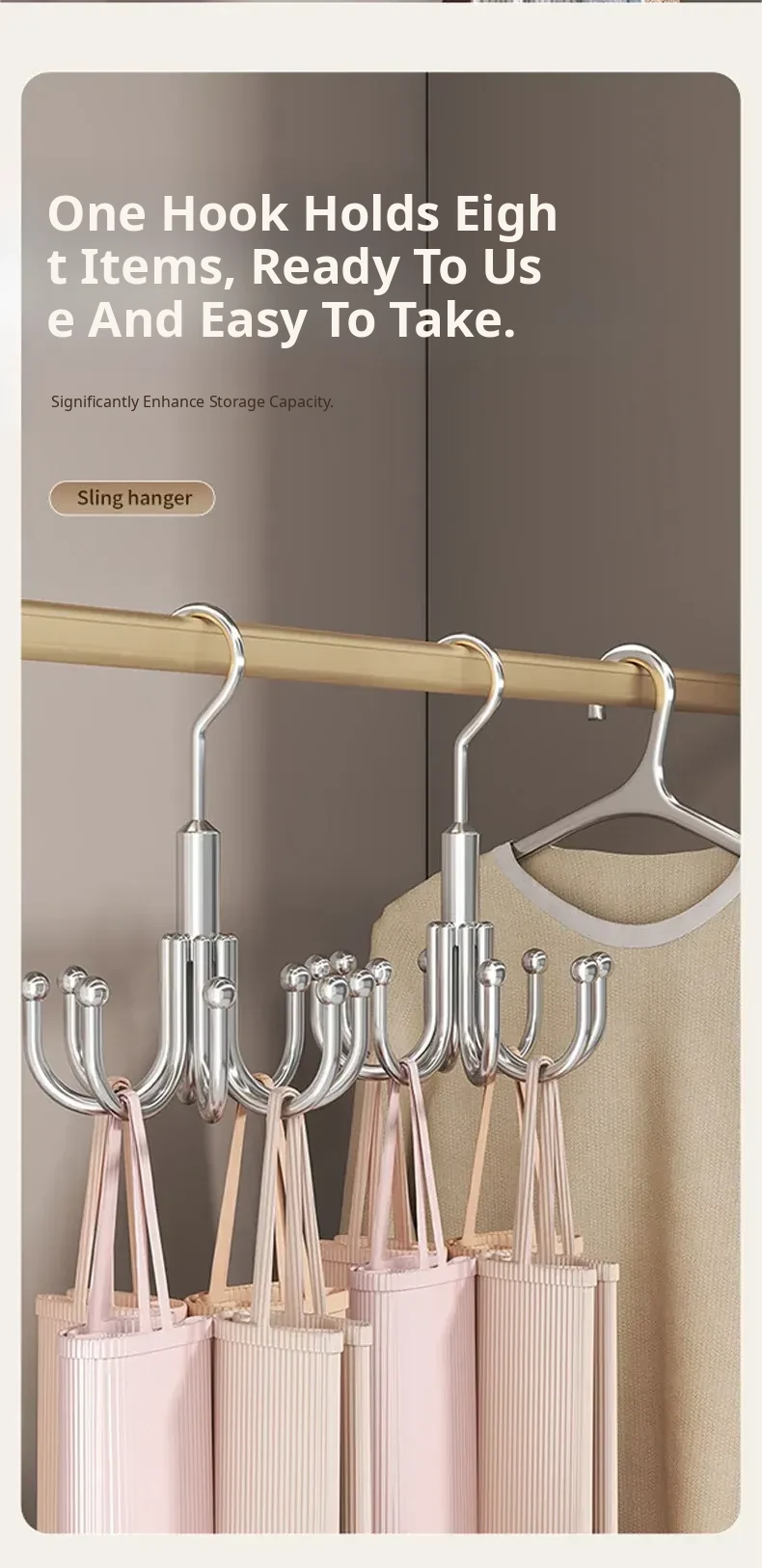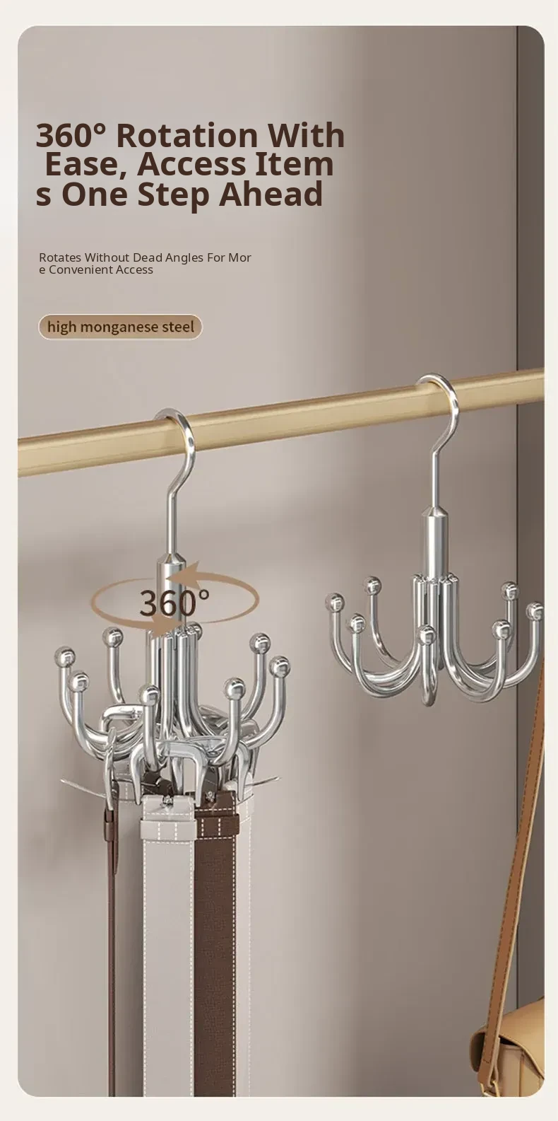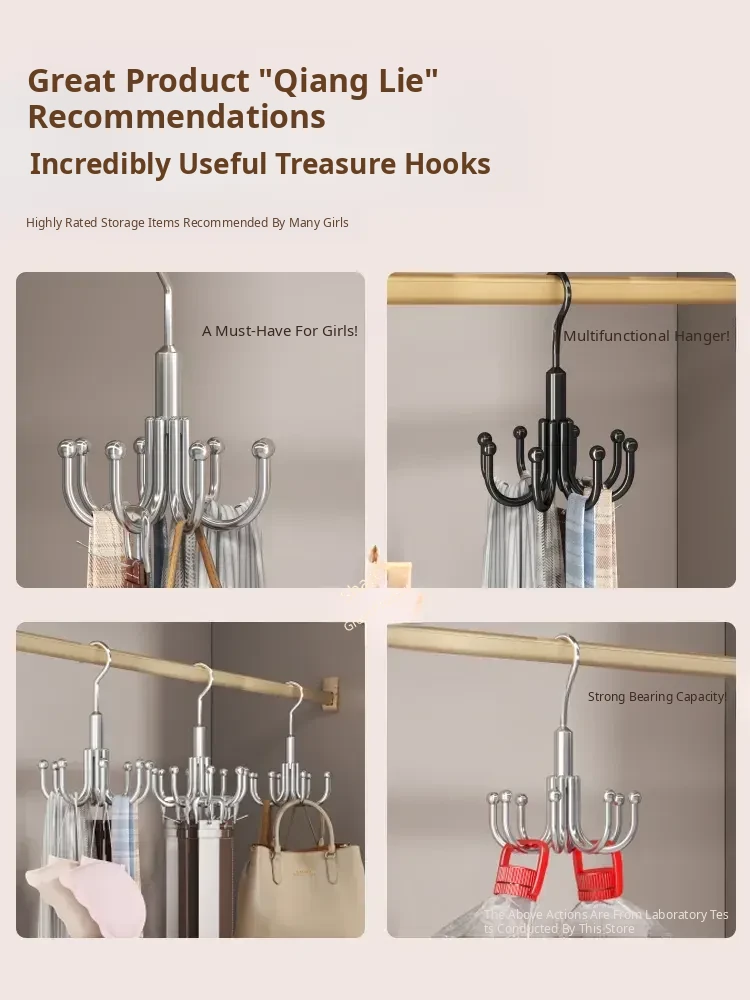 Stainless Steel Hook - No Drill Required, Multi-Functional Hanging Rack for Bags, Clothes, and Hats - Rotatable Storage Solution for Home Organization