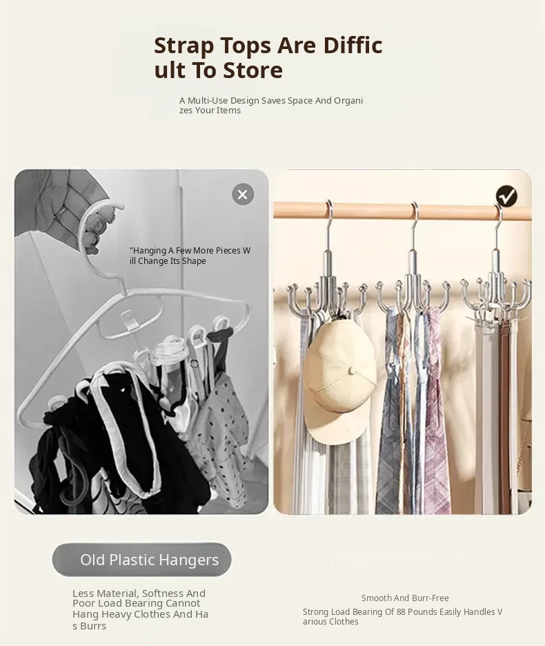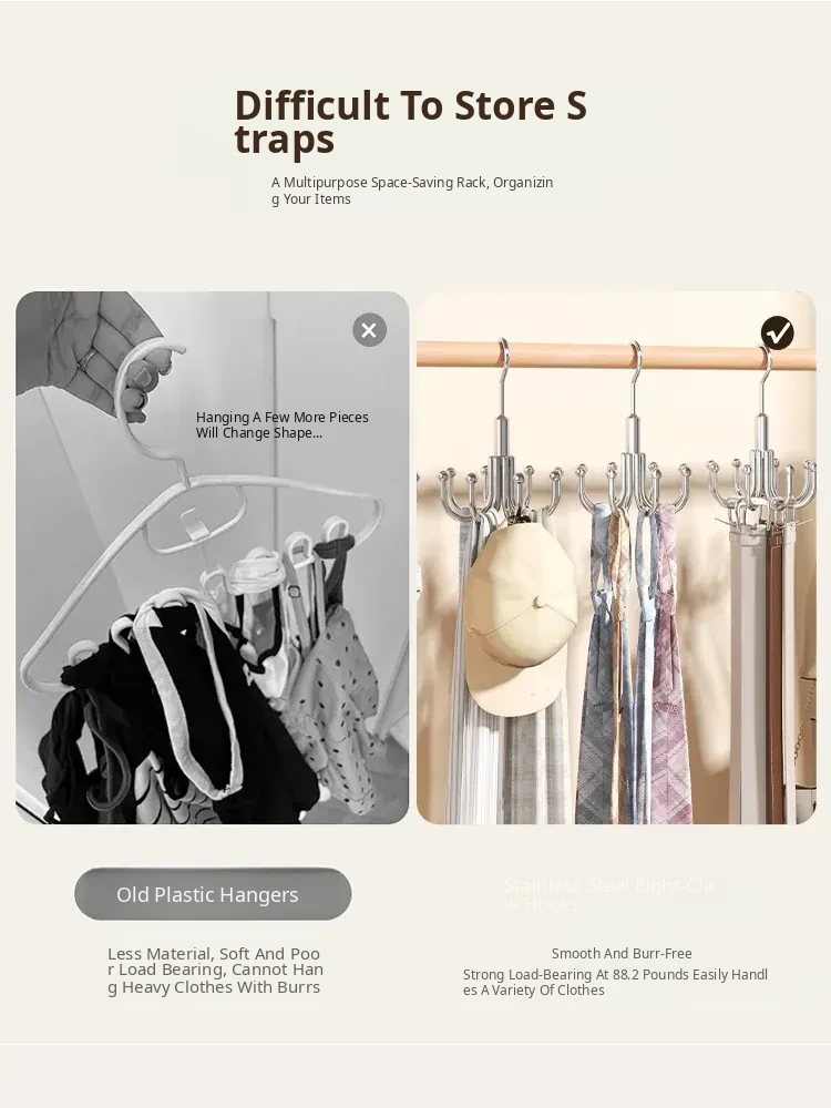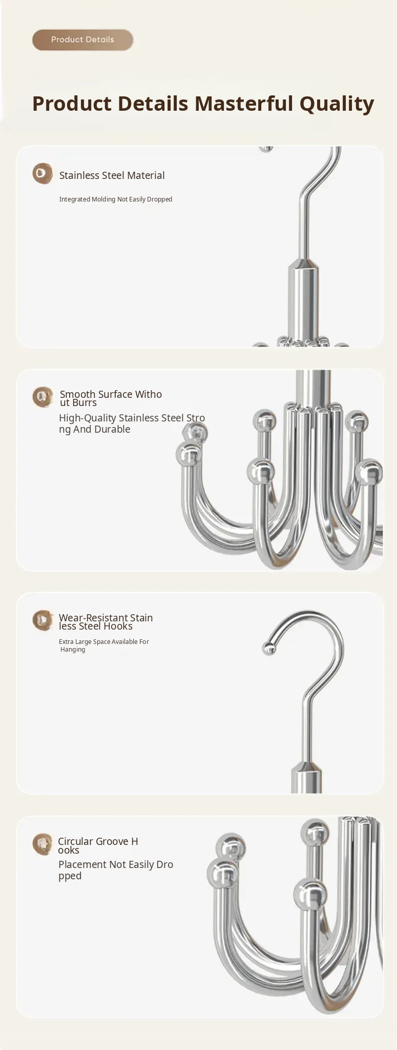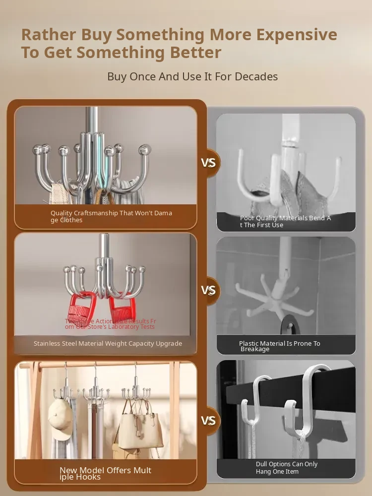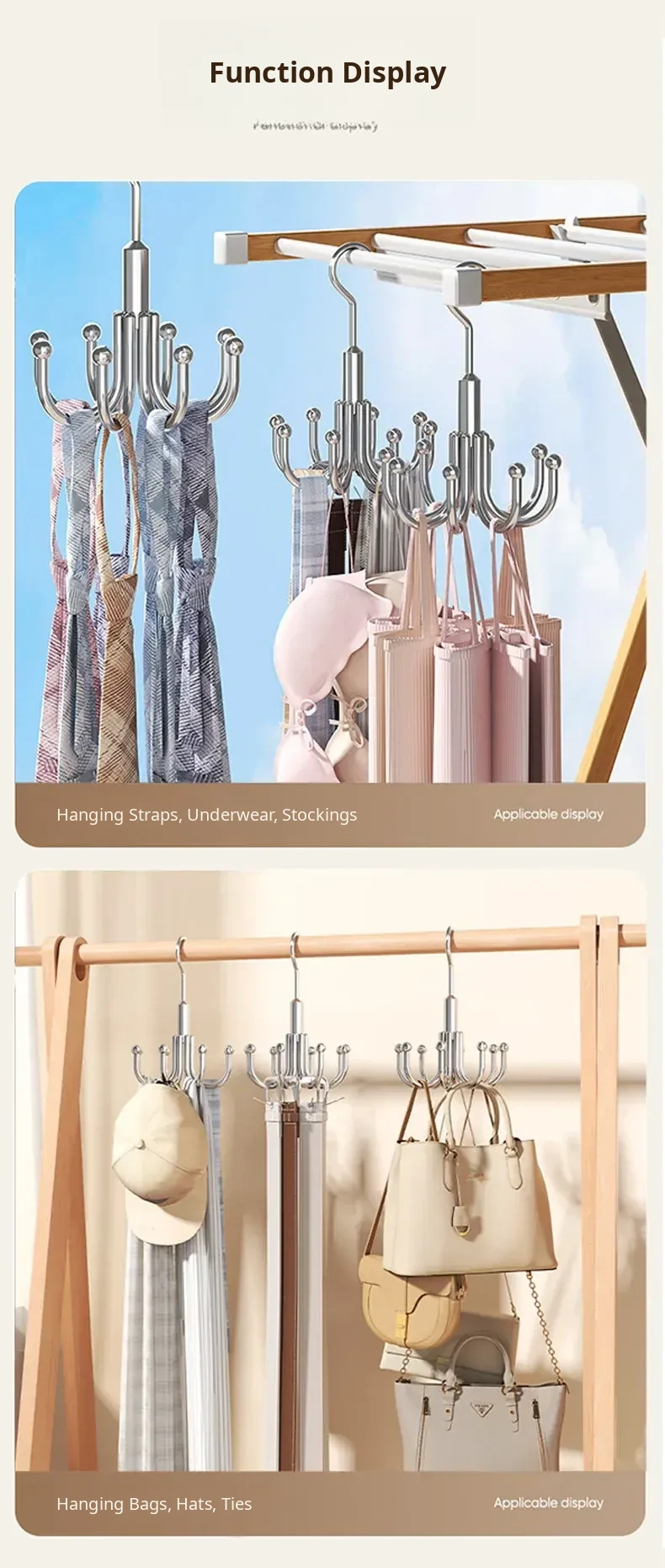 Stainless Steel Hook - No Drill Required, Multi-Functional Hanging Rack for Bags, Clothes, and Hats - Rotatable Storage Solution for Home Organization