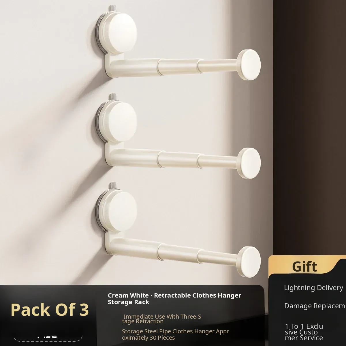 [Milk White] Suction Cup Clothes Hanger Storage Rack (3 Pack)