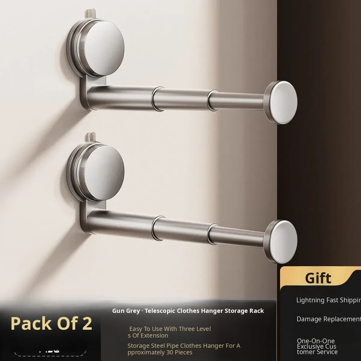 [Gun Gray] Suction Cup Clothes Hanger Storage Rack (2 Pack)