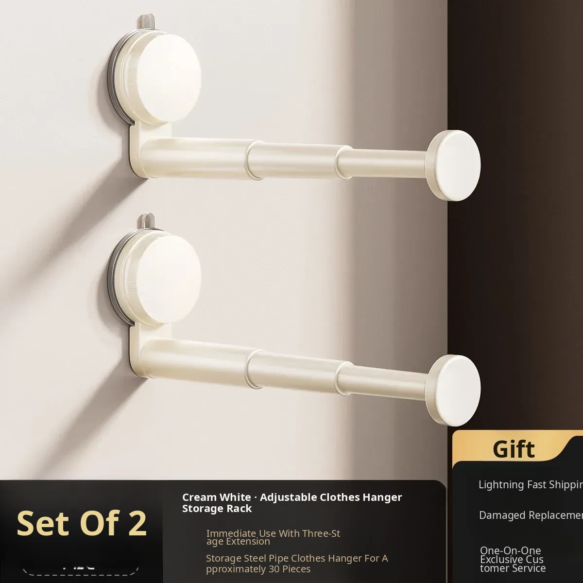 [Milk White] Suction Cup Clothes Hanger Storage Rack (2 Pack)