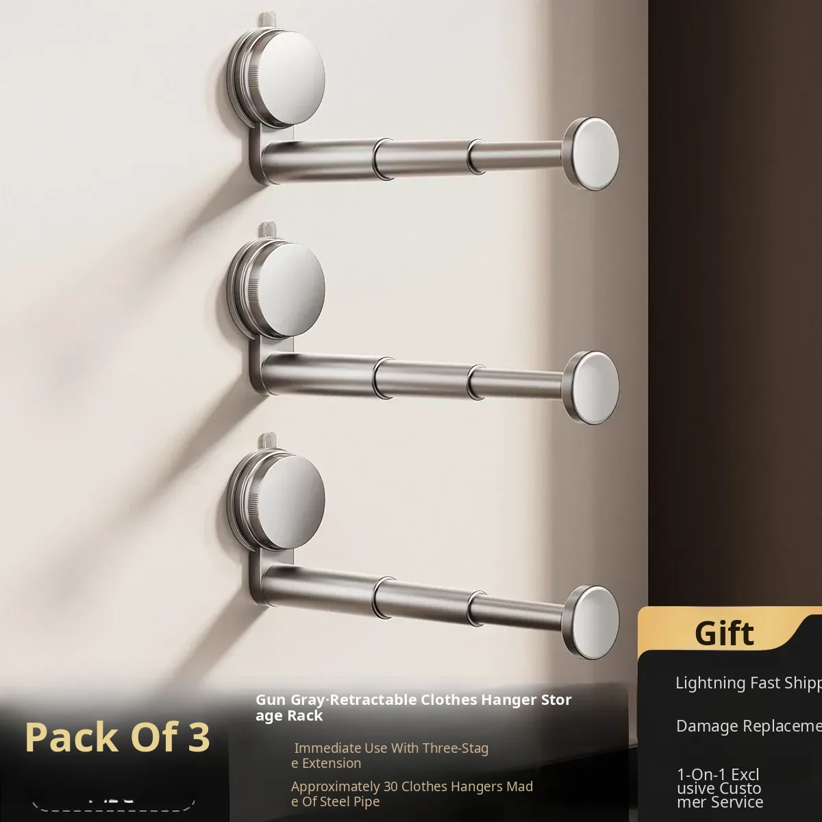[Gun Gray] Suction Cup Clothes Hanger Storage Rack (3 Pack)