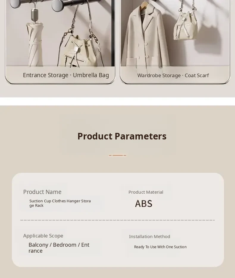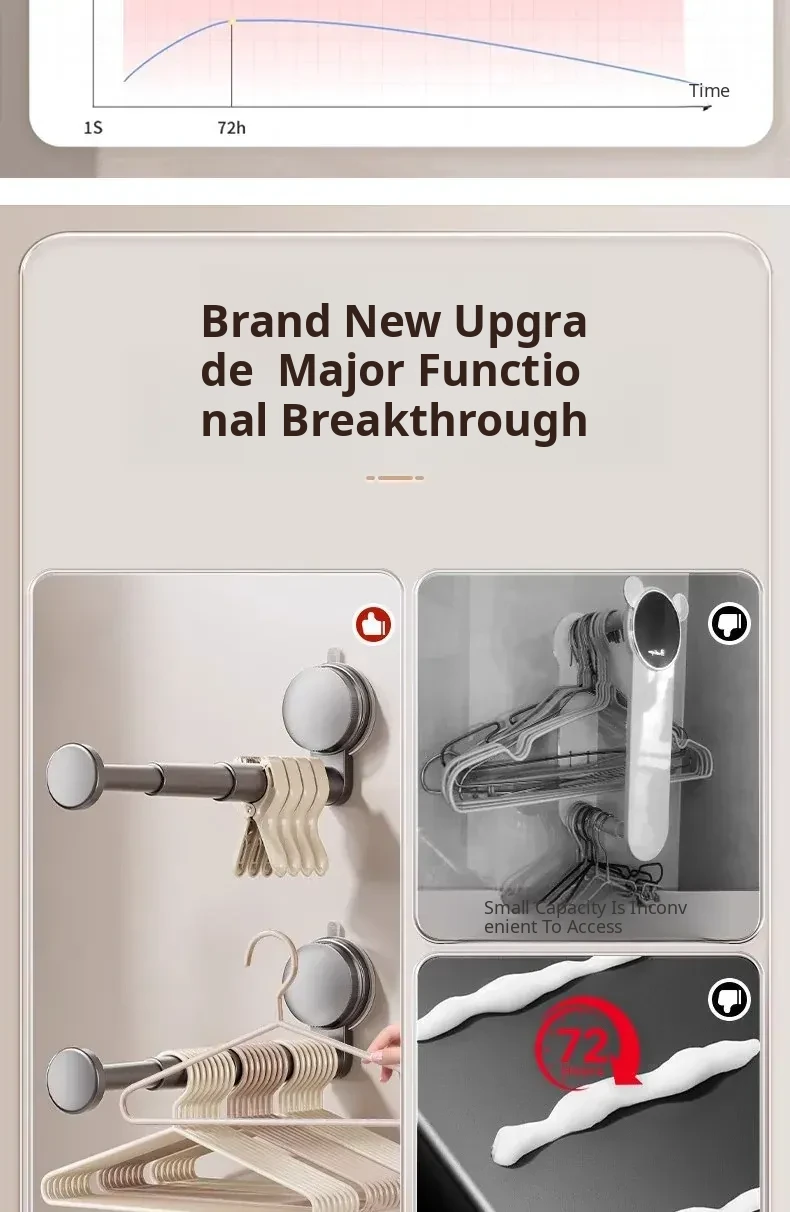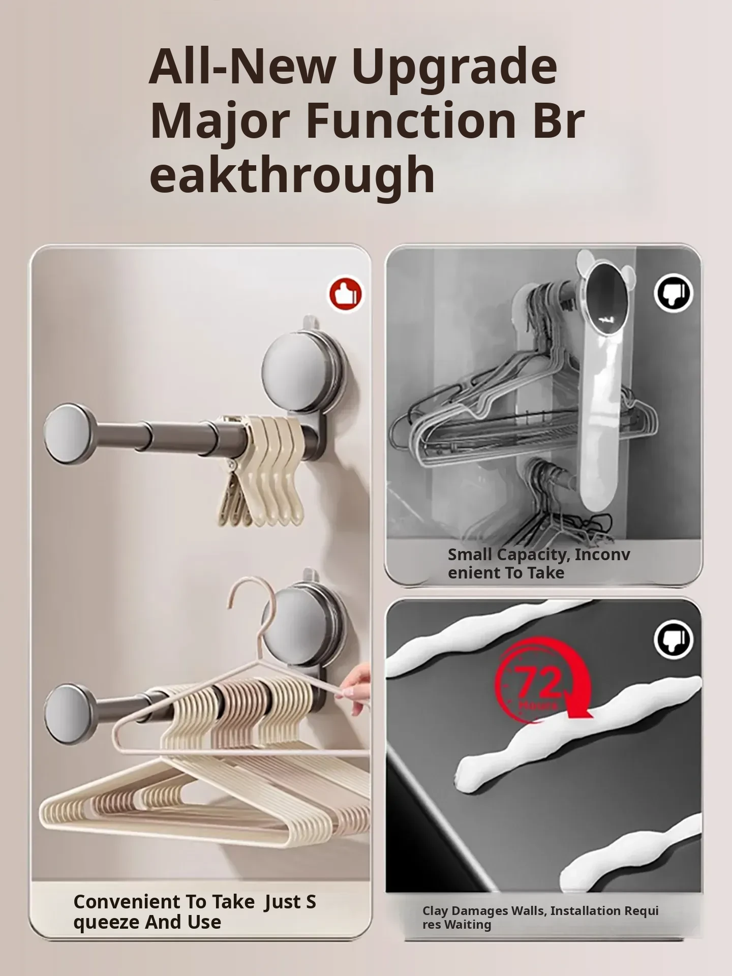 Suction Cup Clothes Hanger - Versatile, Space-Saving Wall-Mounted Rack for Home and Balcony, No Drilling, No Marks, Expandable Design