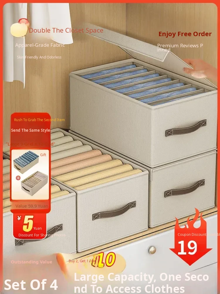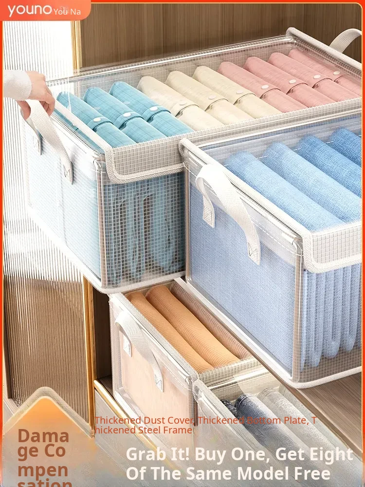 Thickened Clothing Storage Box - Home Organizer for Clothes and Pants, Layered Design, Foldable Fabric Storage Basket for Efficient Wardrobe Organization
