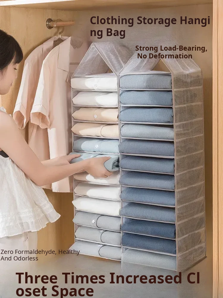 Innovative Hanging Clothes Organizer - Tiered Fabric Storage Bag for Closet, Perfect for Pants and Garments Separation, Space-Saving Solution for Home Organization