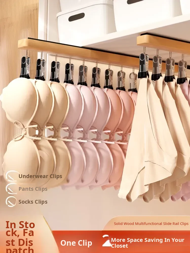 No-Drill Solid Wood 12-Slot Hangers - Expandable Sliding Rail for Closet Storage, Perfect for Organizing Bras, Pantyhose, and Lingerie! A Must-Have Space-Saving Solution for Your Home!