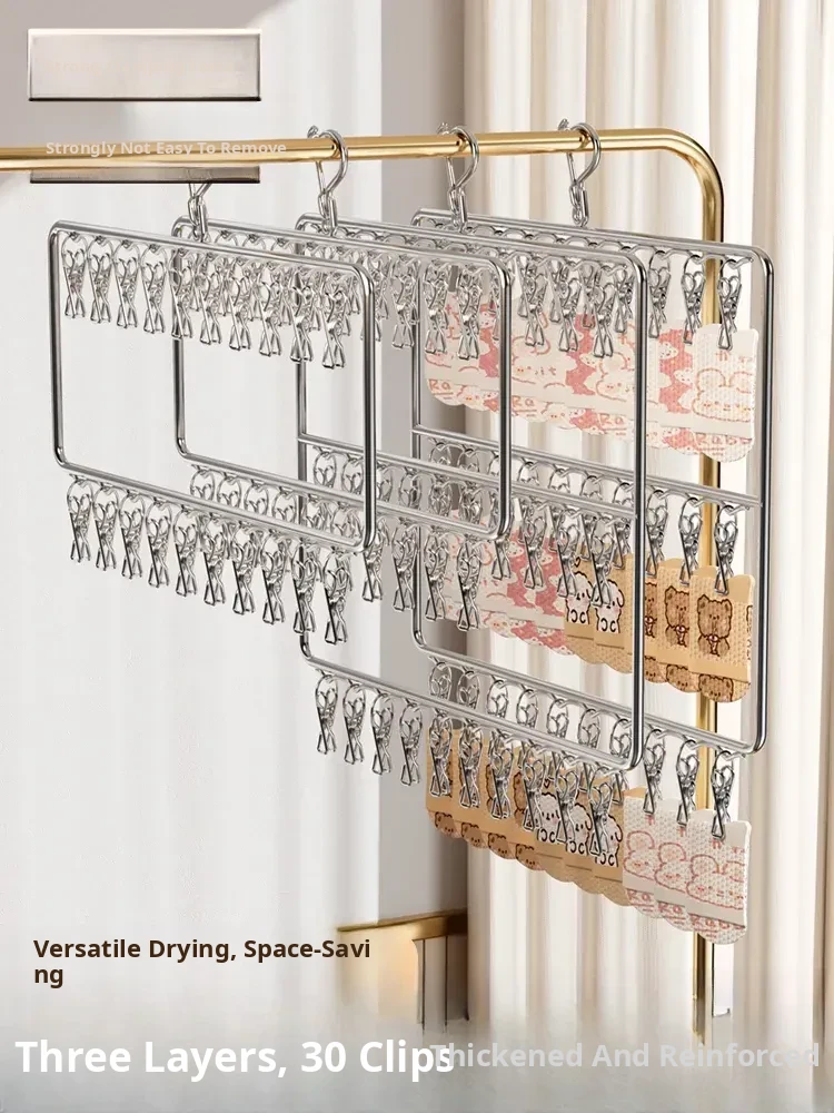 Multi-Clip Stainless Steel Sock Drying Rack - Versatile Windproof Hooks for Socks and Towels, Perfect for Dorms and Home Use!