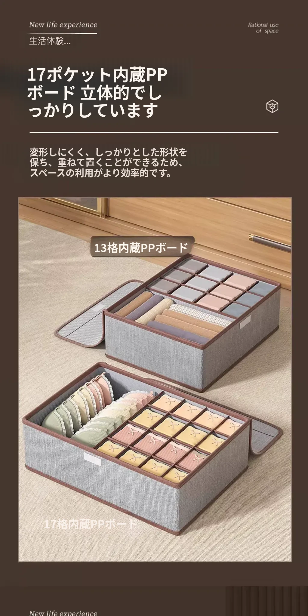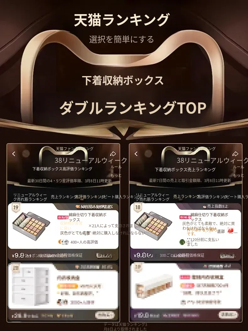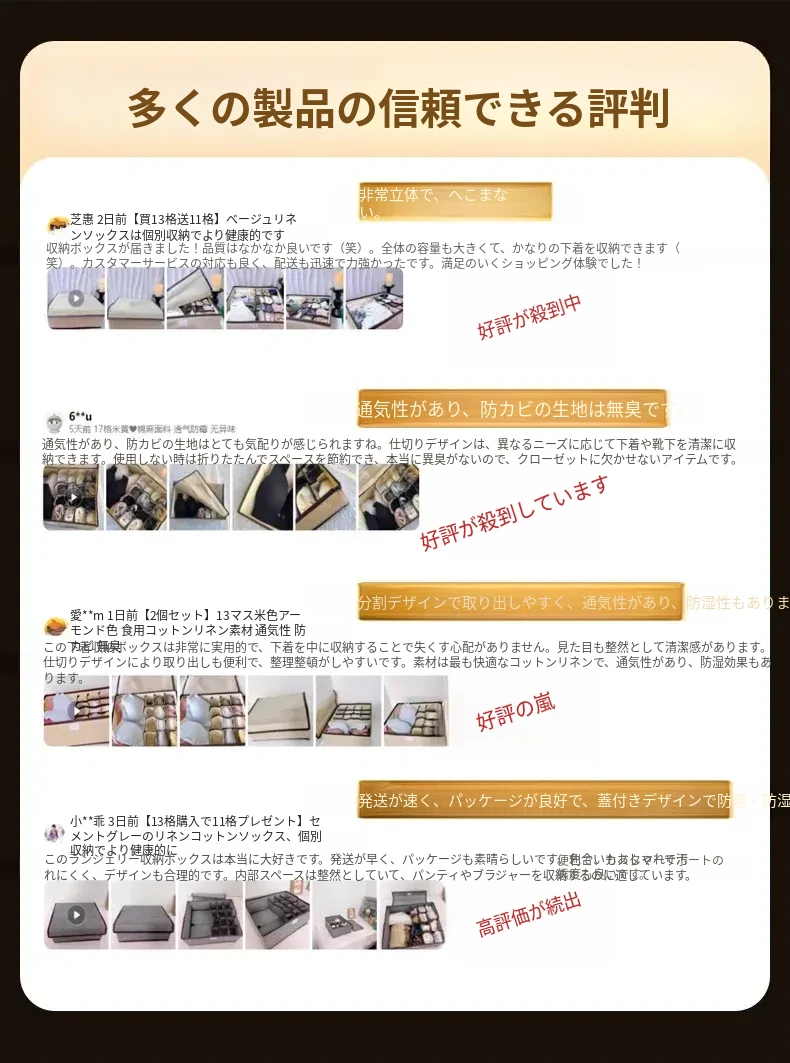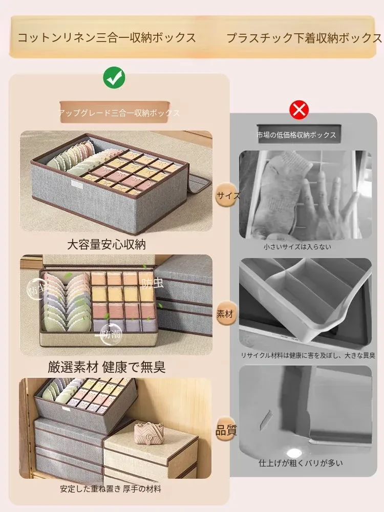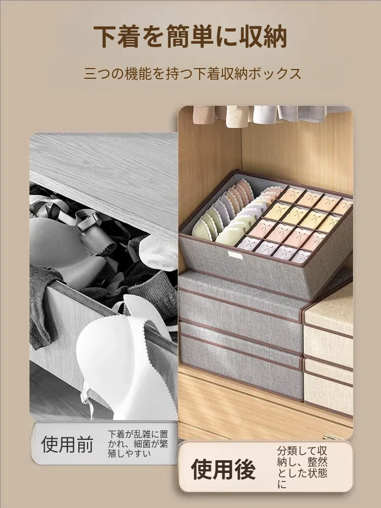 収納力抜群!下着・靴下・ブラジャーがすっきり整理できる3in1引き出し型収納ボックス - 家庭にぴったりな便利アイテム!