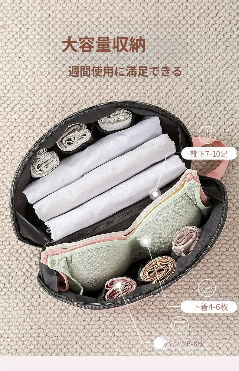 旅行に最適!3in1インナー収納バッグ - スーツケースにぴったりな下着・靴下整理袋で、荷物がすっきり!便利でスタイリッシュな収納ソリューション。