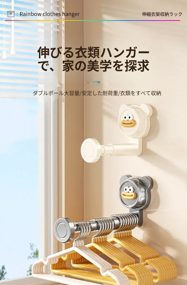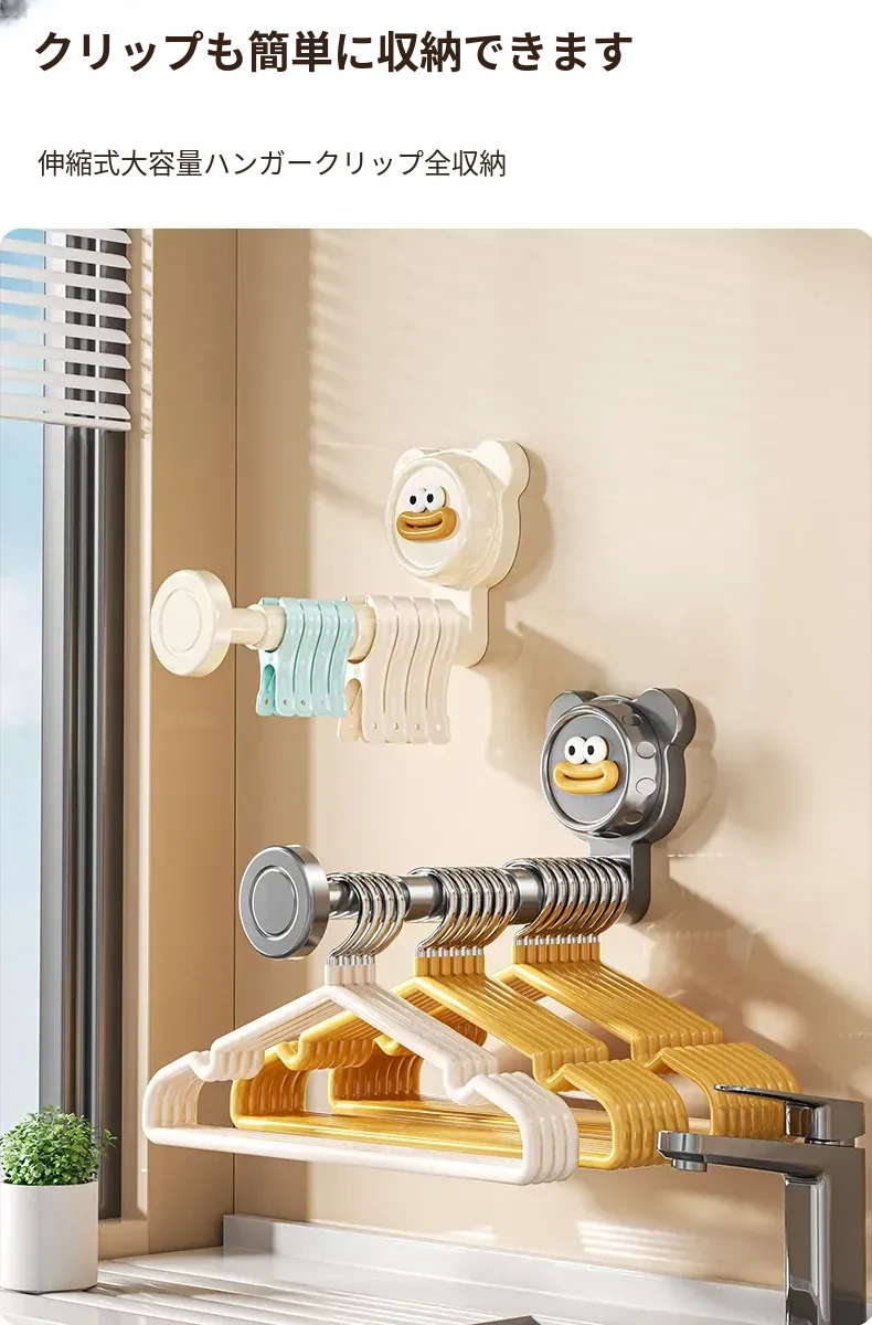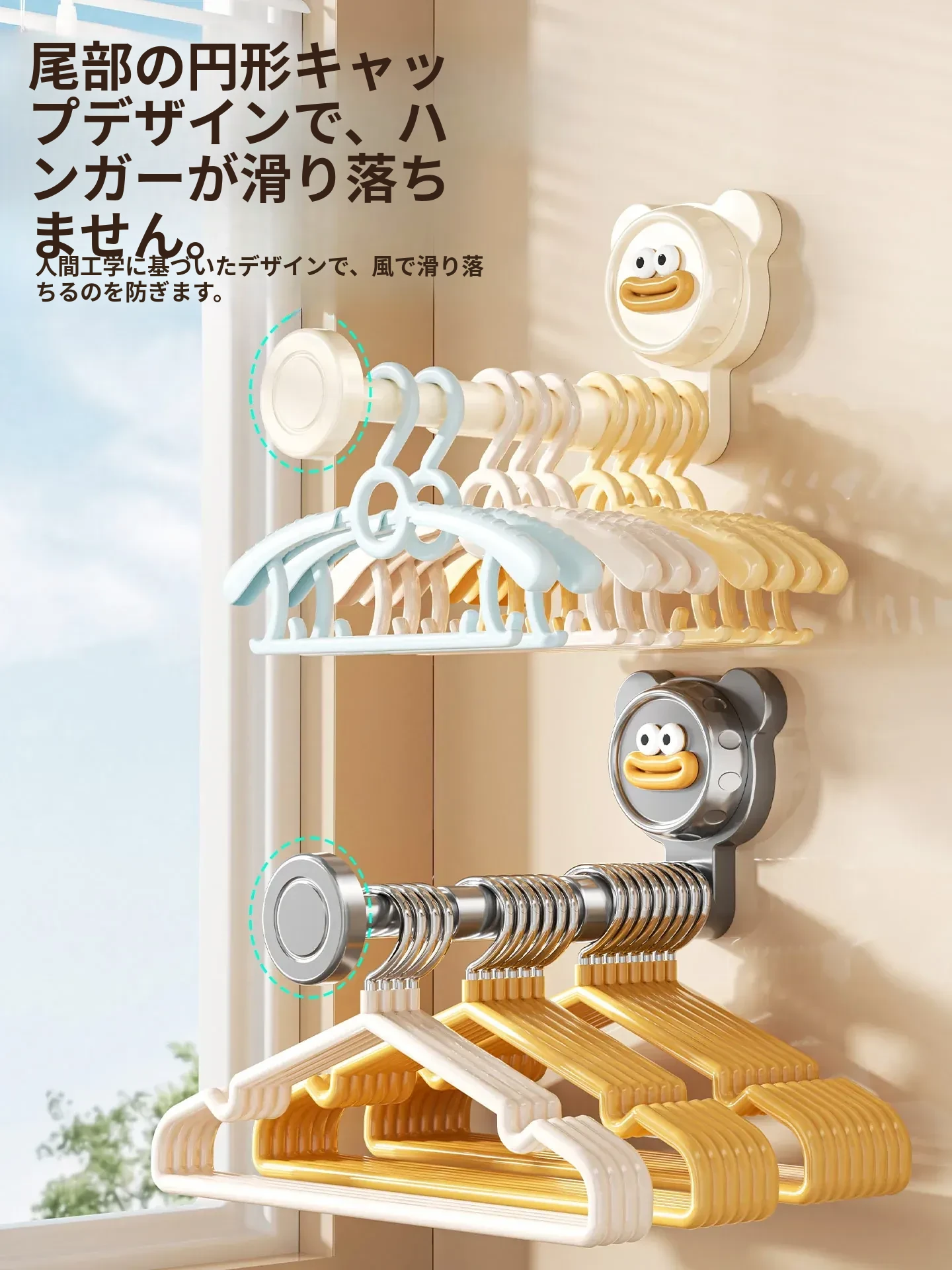 吸盤式の伸縮ハンガー - 家庭用バルコニーや窓に最適!折りたたみ可能で旅行にも便利。穴を開けずに衣類を干せる画期的な干し衣類神器!