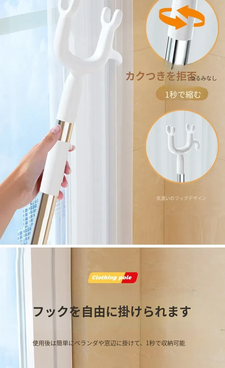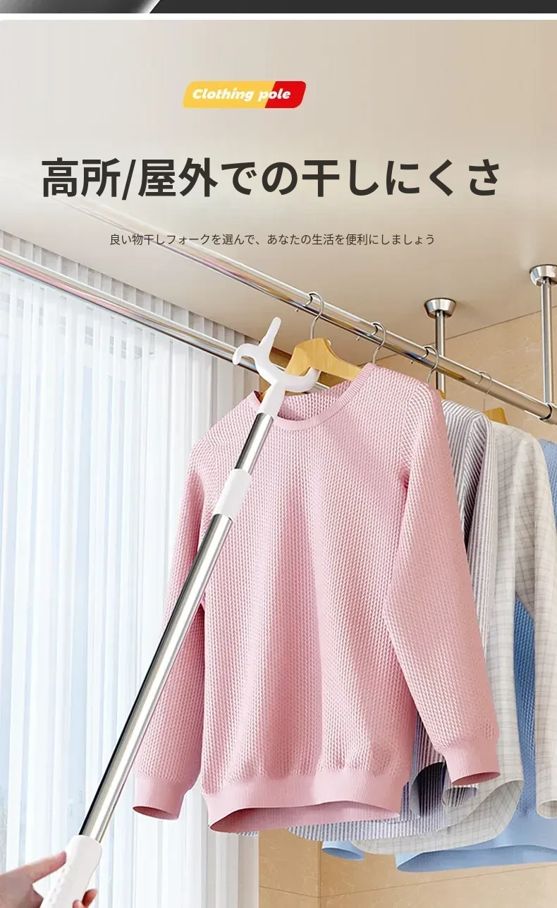 家庭用の伸縮式衣類ラック - ステンレス製の頑丈な衣類掛け、バルコニーでの使用に最適!衣服を簡単に取り出せる便利なデザインで、洗濯物干しを快適にサポートします。