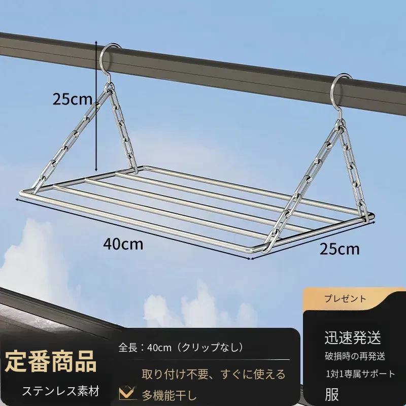 バルコニー用折りたたみ式物干しラック - 窓際・屋外に最適!穴あけ不要の壁掛けデザインで、靴や靴下をスッキリ収納。おしゃれで便利なスペースを作りましょう!