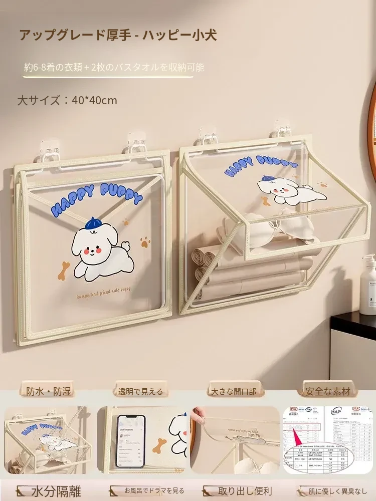 アップグレード大サイズ❤️ハッピー小犬【約7〜9着の衣類+バスタオル2枚収納可】