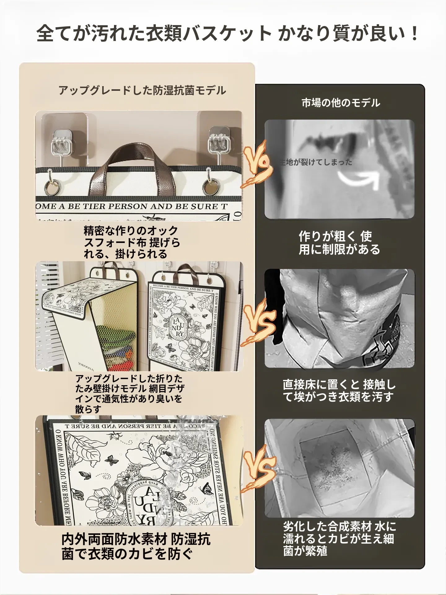 特大サイズ✅【壁掛け折りたたみタイプ】(汚れた衣類約30着収納可/長期間放置しても臭わない)
