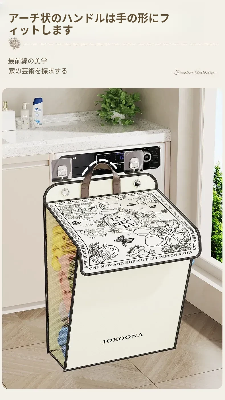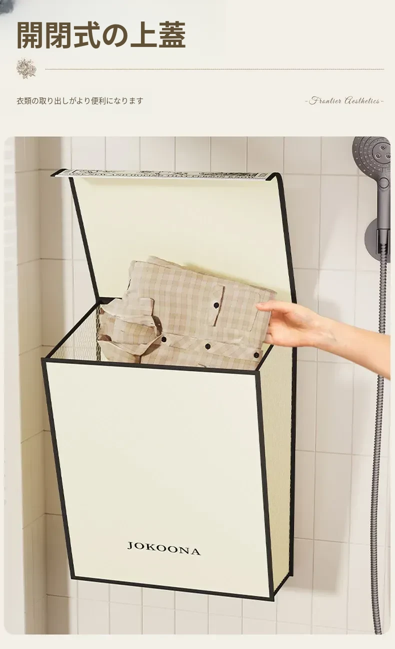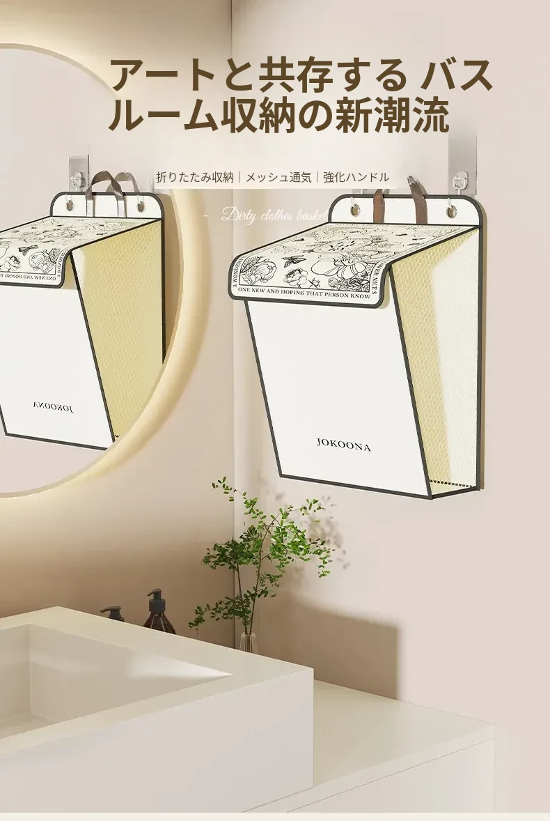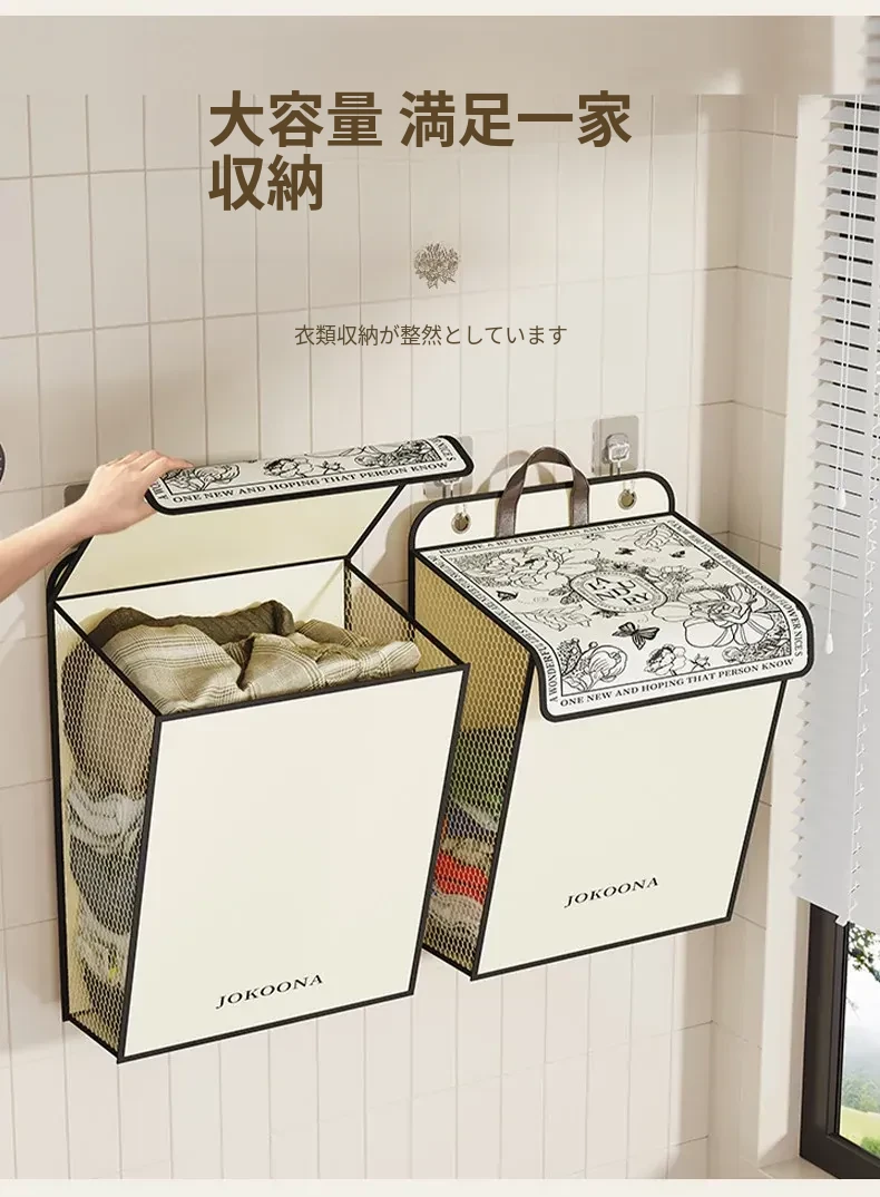 折りたたみ式壁掛け洗濯カゴ - 衛生的なバスルーム収納に最適!使わない時はコンパクトに収納可能、洗濯物をスッキリ整理!おしゃれなデザインでお部屋を演出。