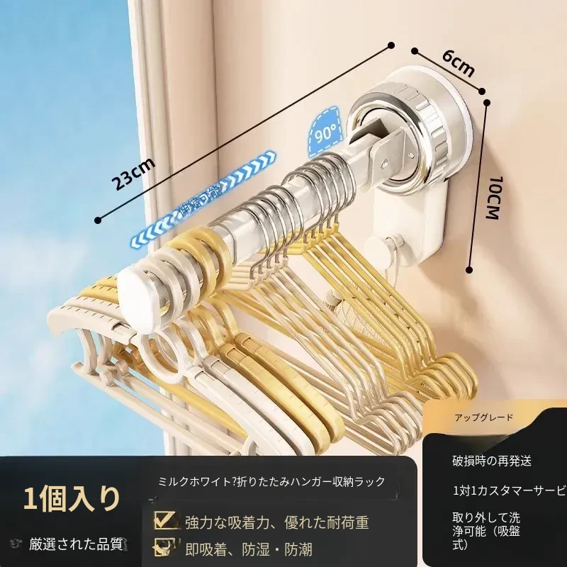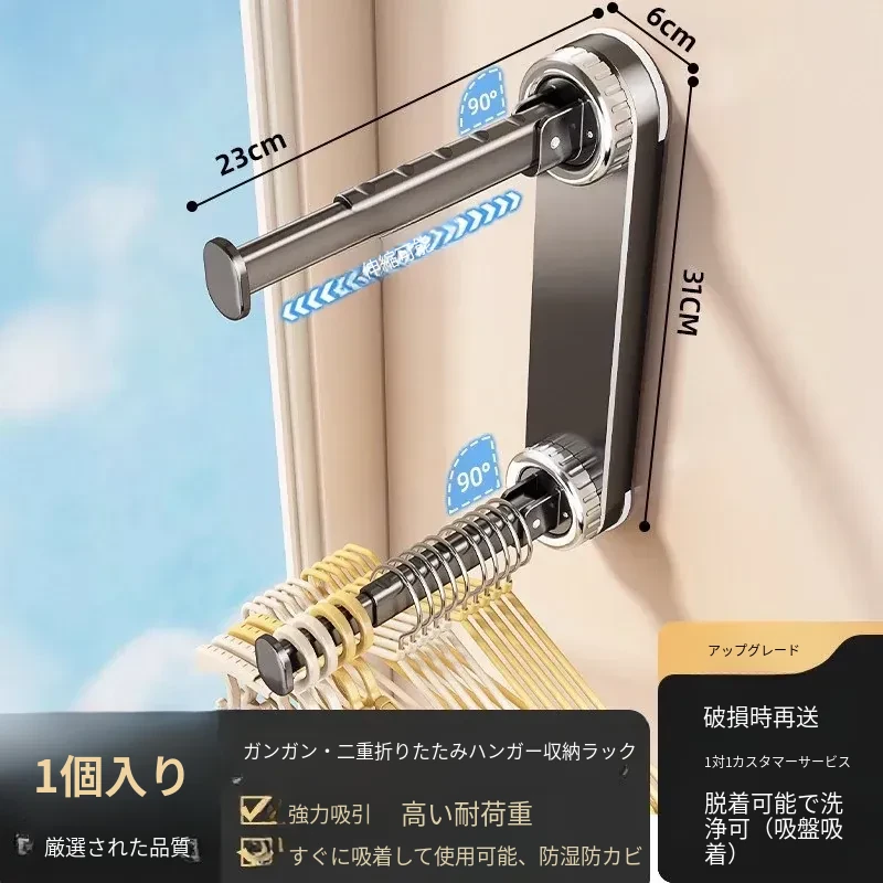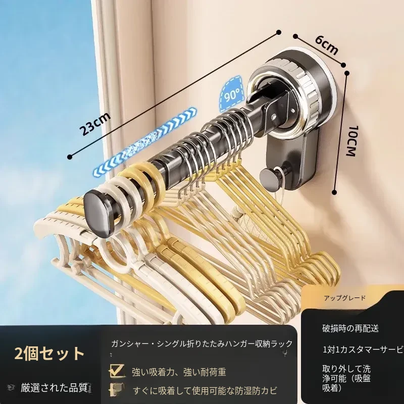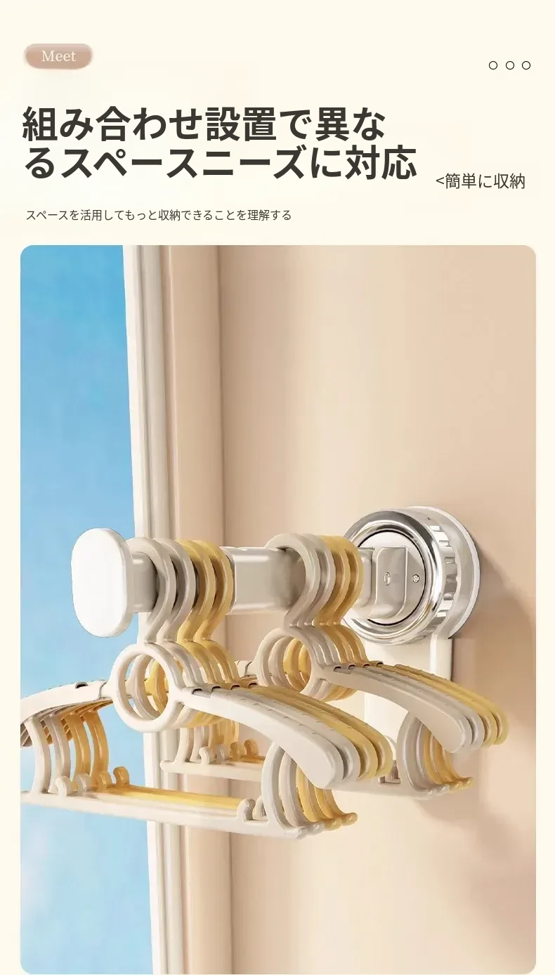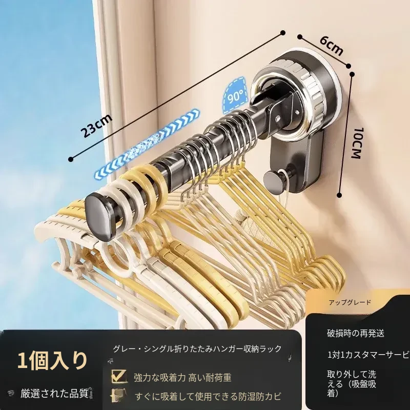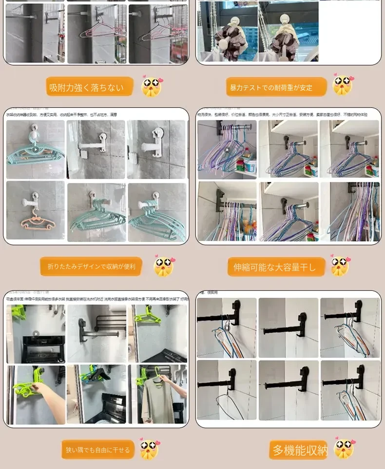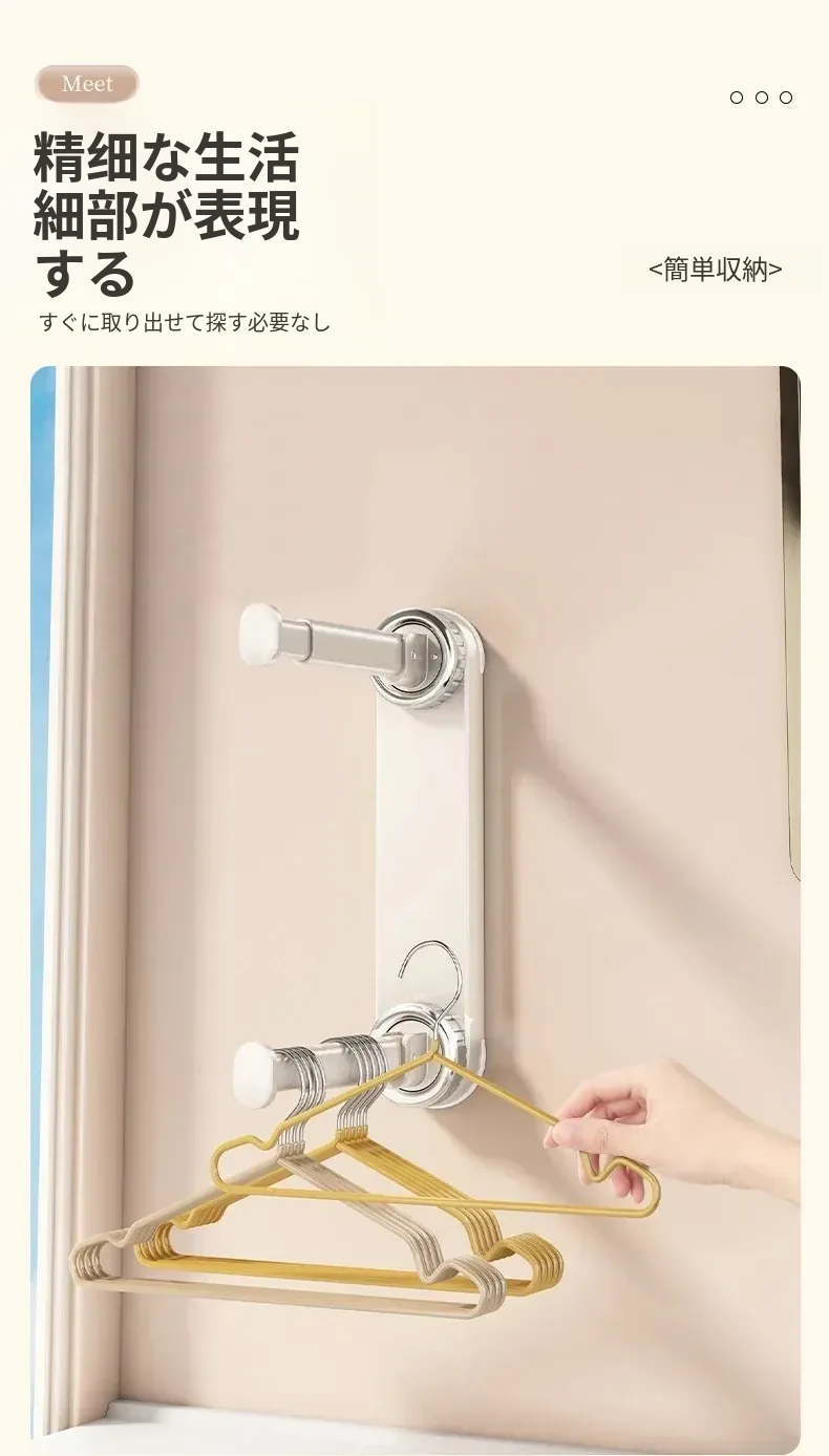 壁掛け多機能吸盤衣類ハンガー - 簡単取り付け、伸縮可能でスペースを有効活用!バルコニーや壁にぴったりの収納アイテム。穴開け不要で、すっきり整理整頓を実現!