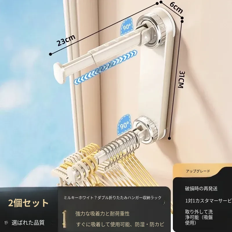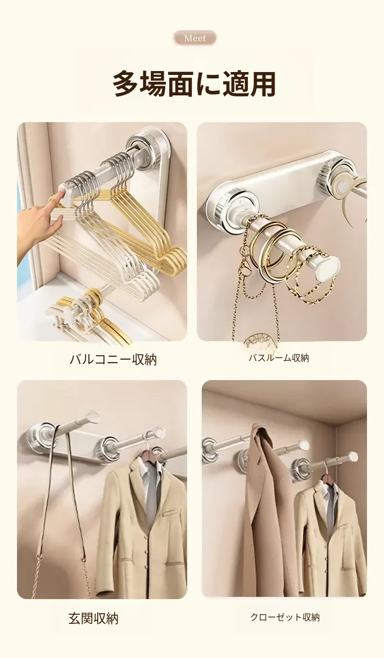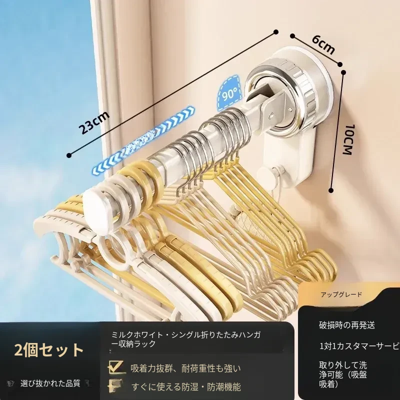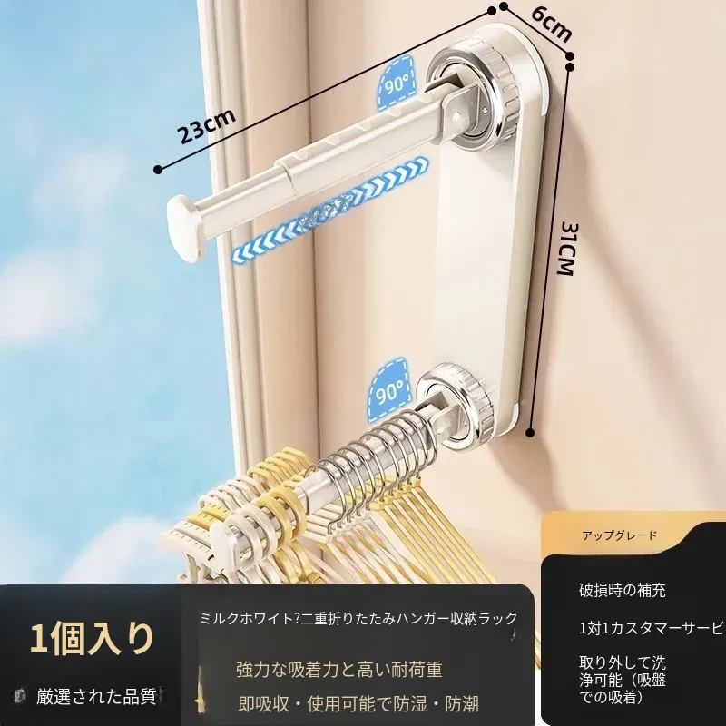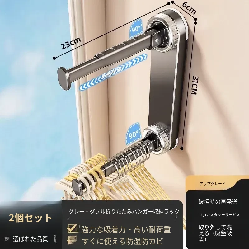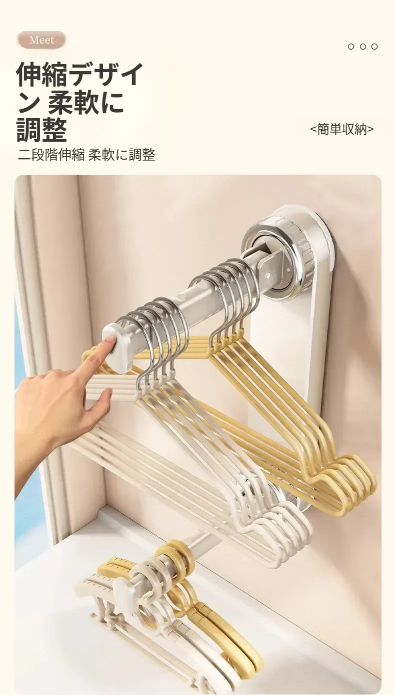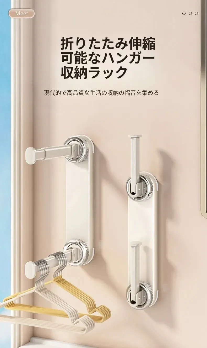 壁掛け多機能吸盤衣類ハンガー - 簡単取り付け、伸縮可能でスペースを有効活用!バルコニーや壁にぴったりの収納アイテム。穴開け不要で、すっきり整理整頓を実現!