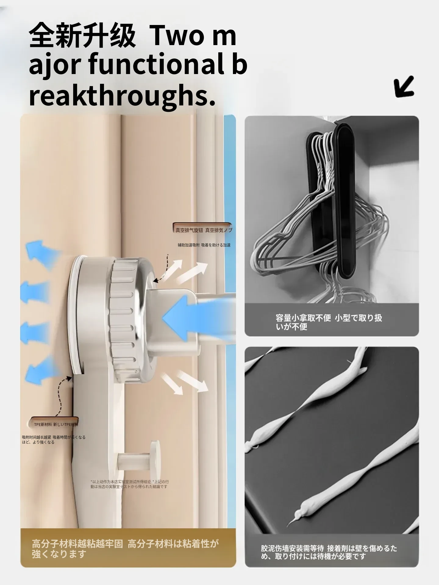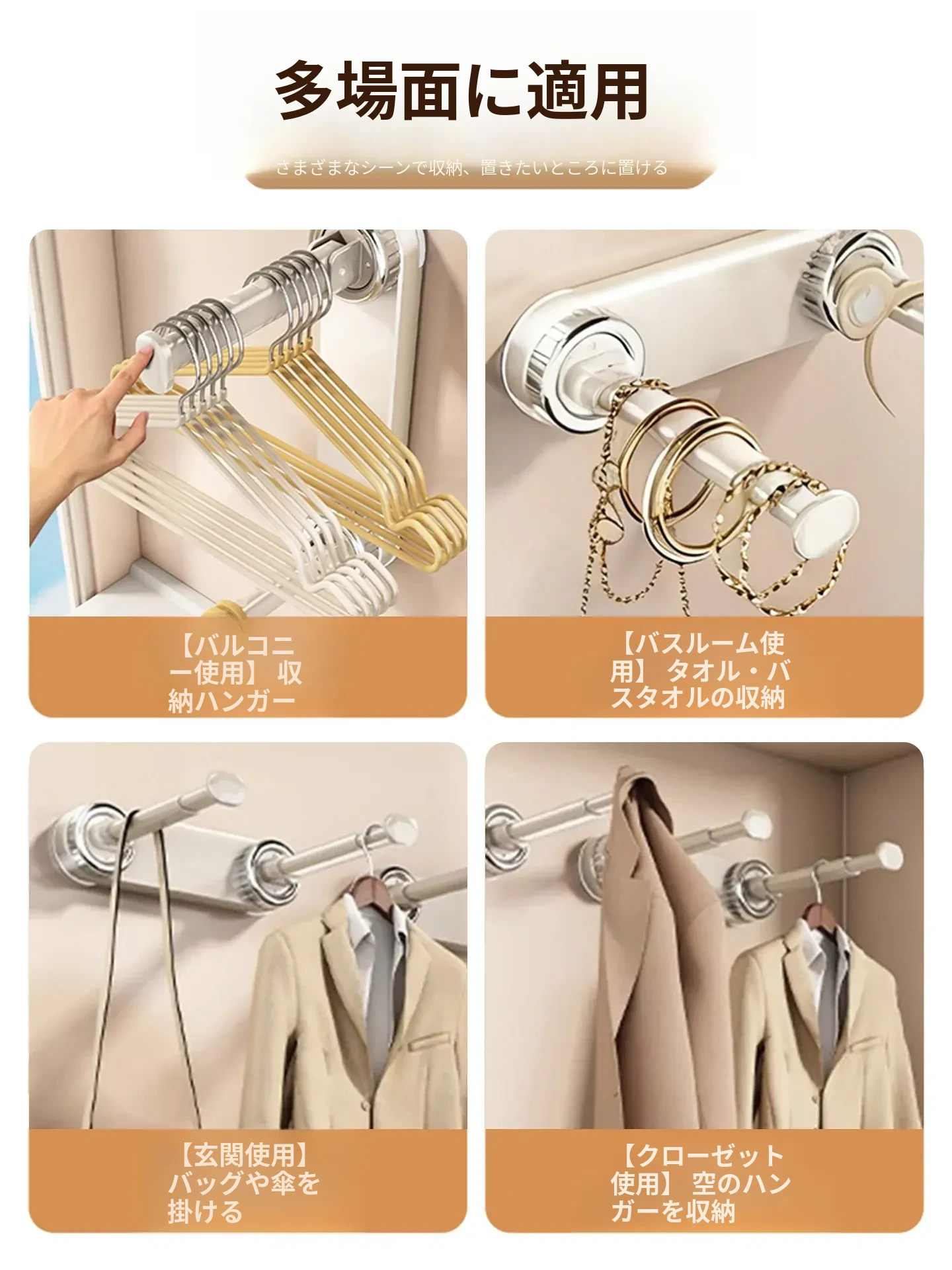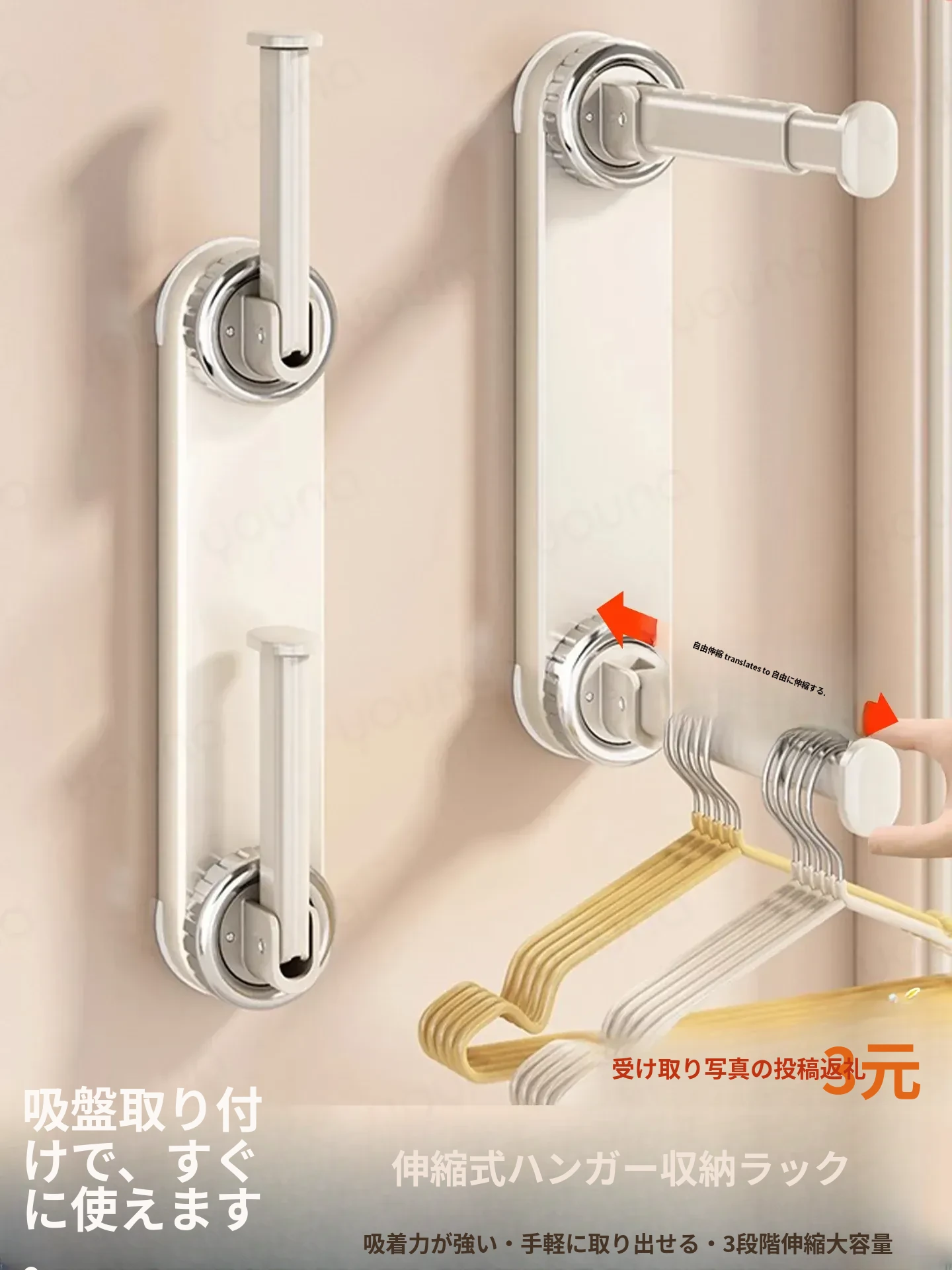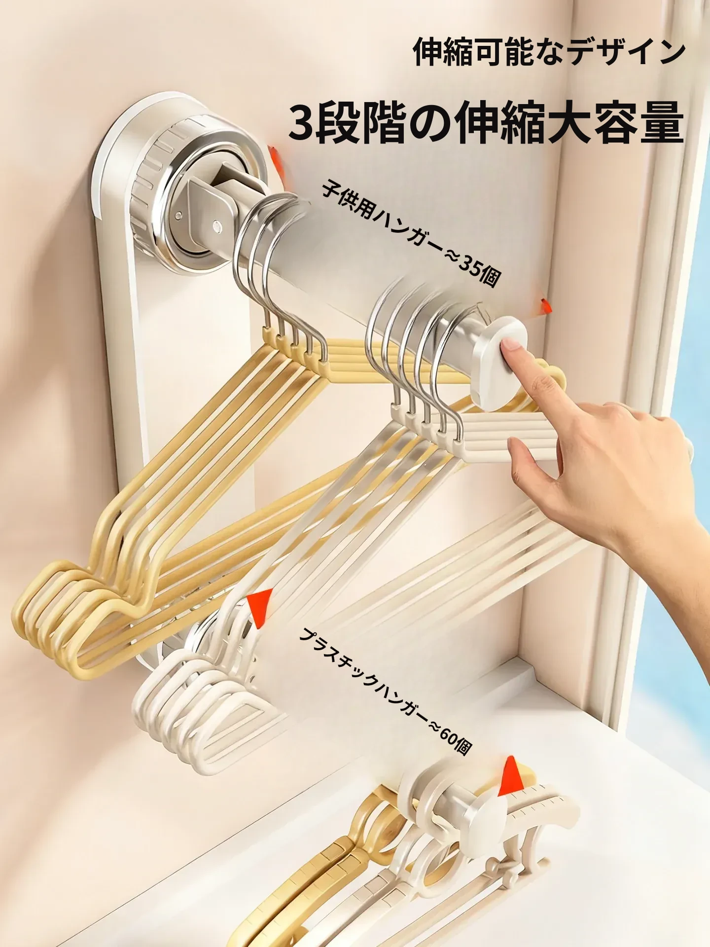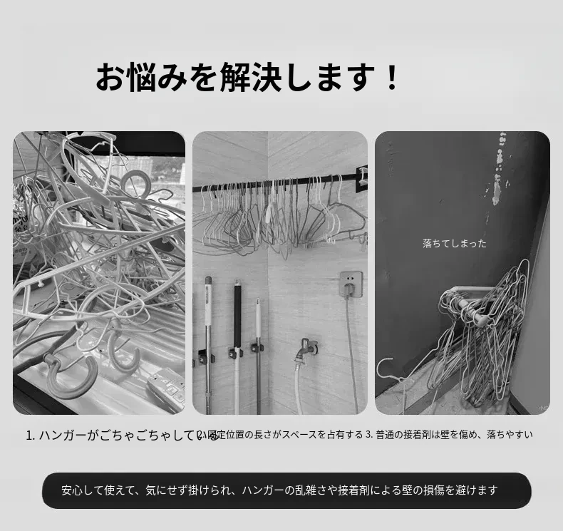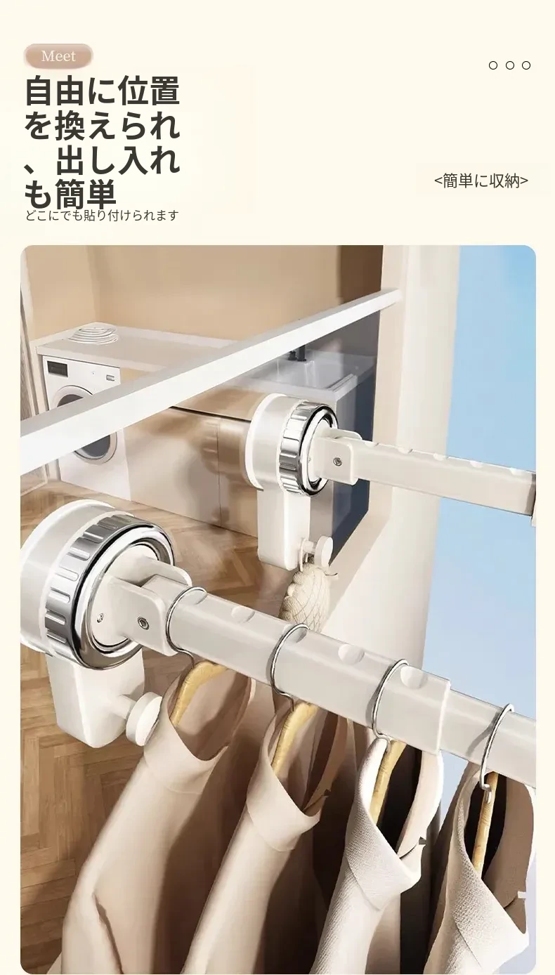 壁掛け多機能吸盤衣類ハンガー - 簡単取り付け、伸縮可能でスペースを有効活用!バルコニーや壁にぴったりの収納アイテム。穴開け不要で、すっきり整理整頓を実現!