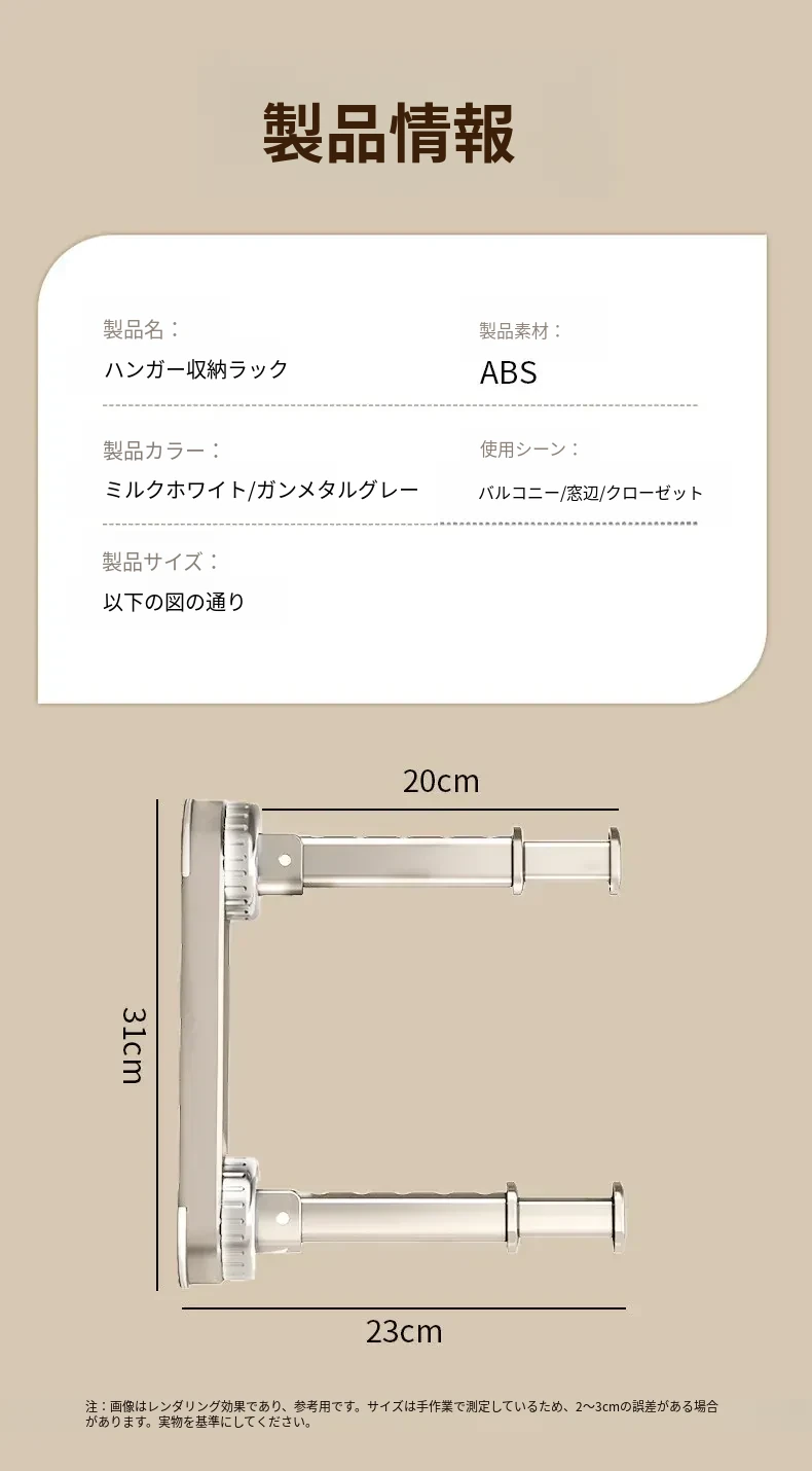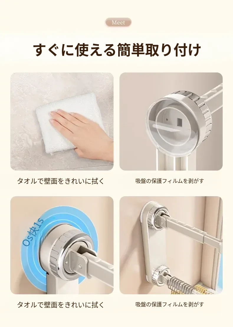 クリームホワイト✅ダブルロッドタイプ【長時間吸着/耐荷重約30kg】