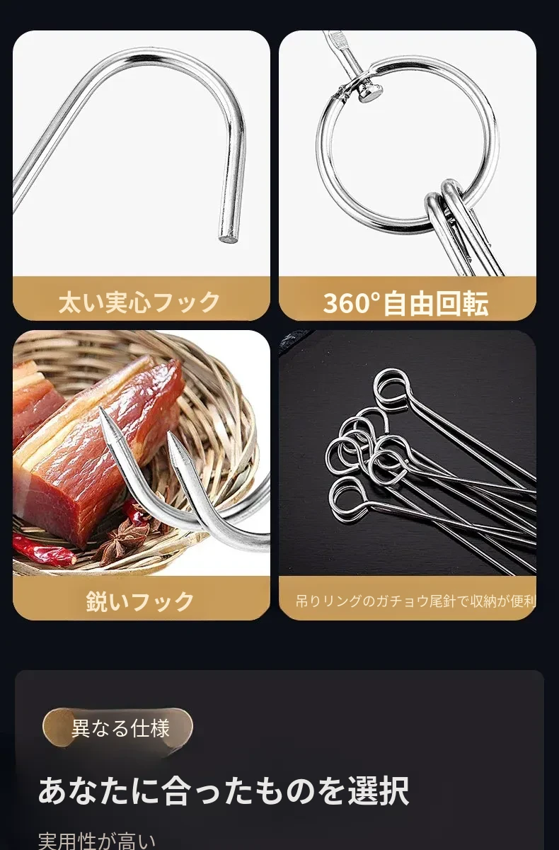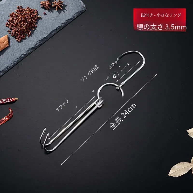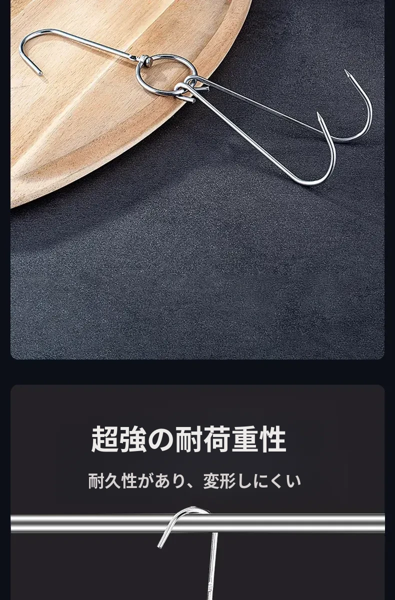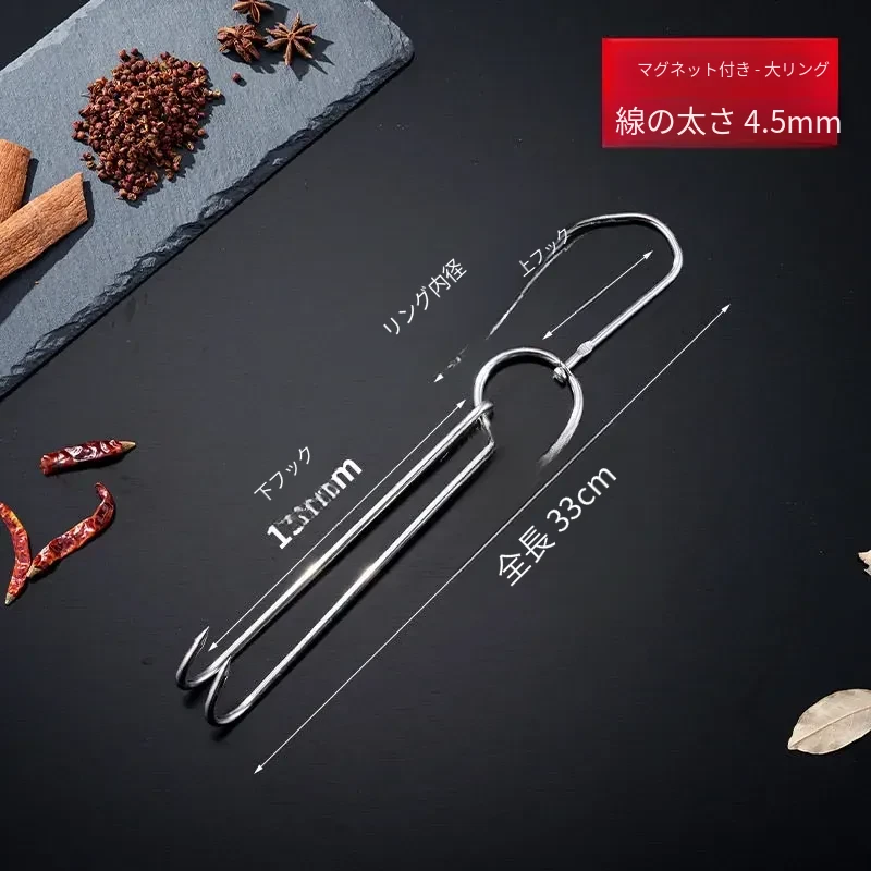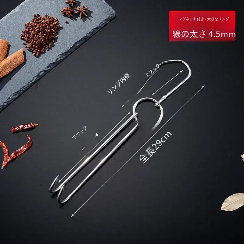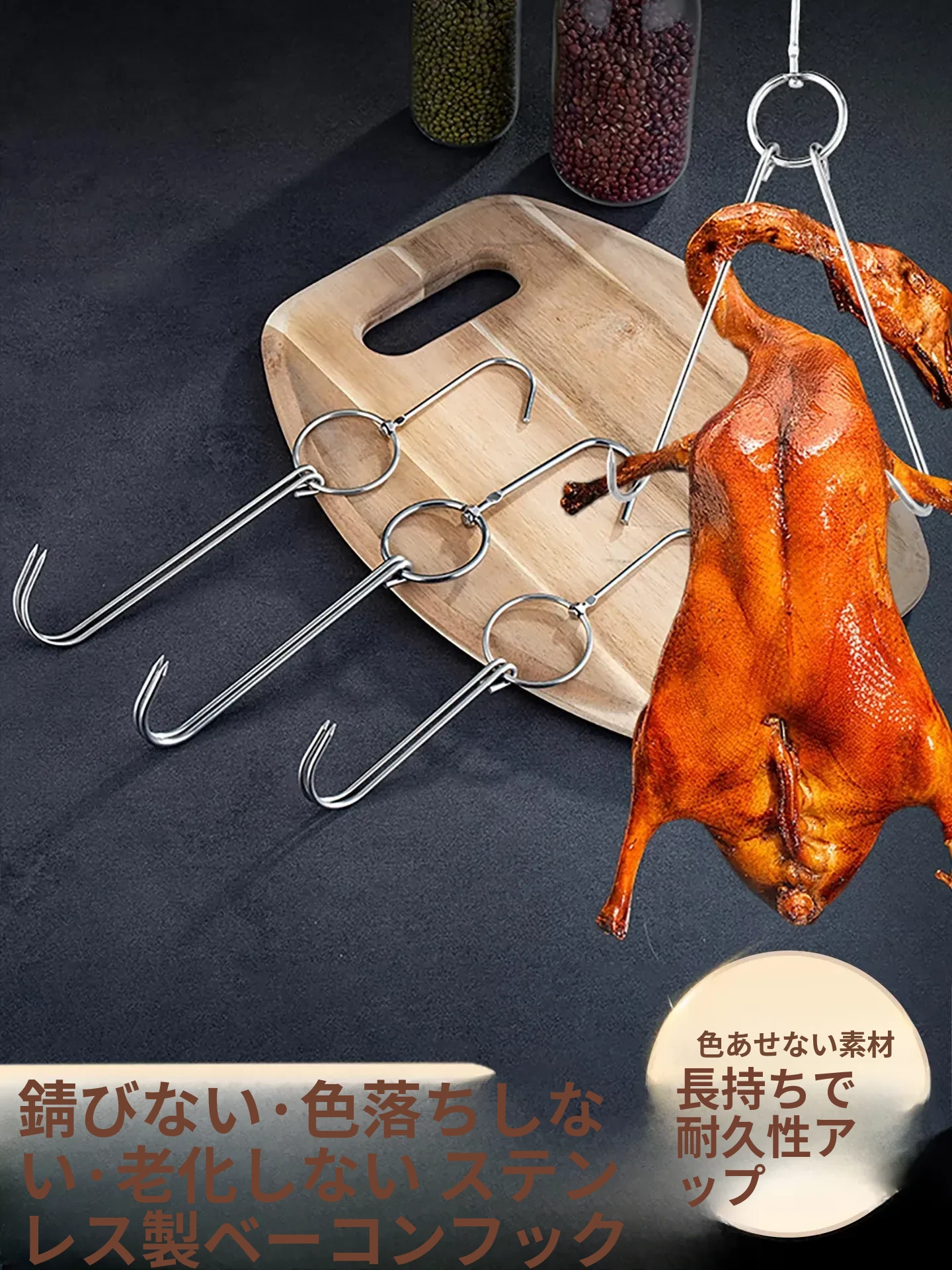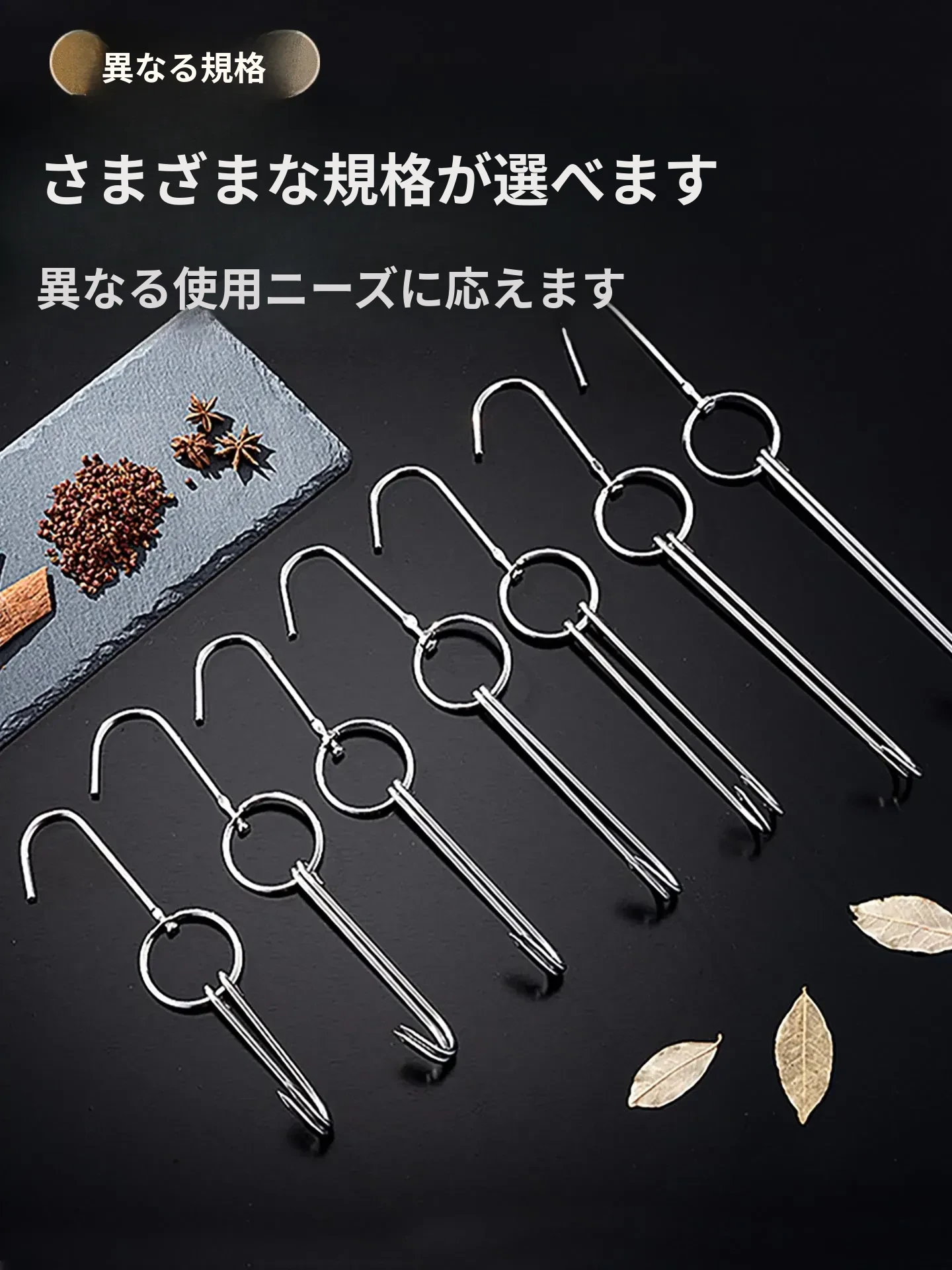 焼き鴨・チャーシュー専用!S型ステンレス製肉干しフック - 大型・太型・尖った先端で、ソーセージや豚肉をしっかり固定。耐久性抜群で、家庭での本格的な乾燥・燻製作りをサポートします!