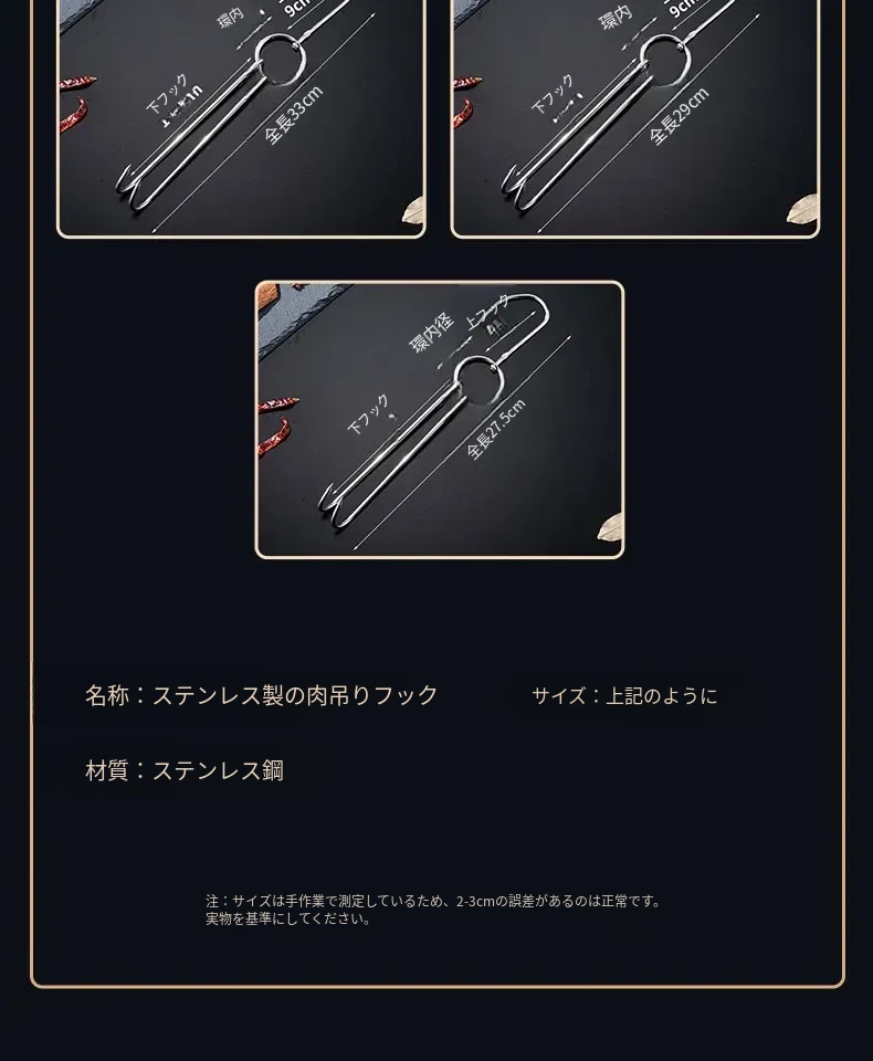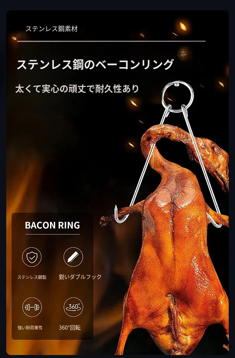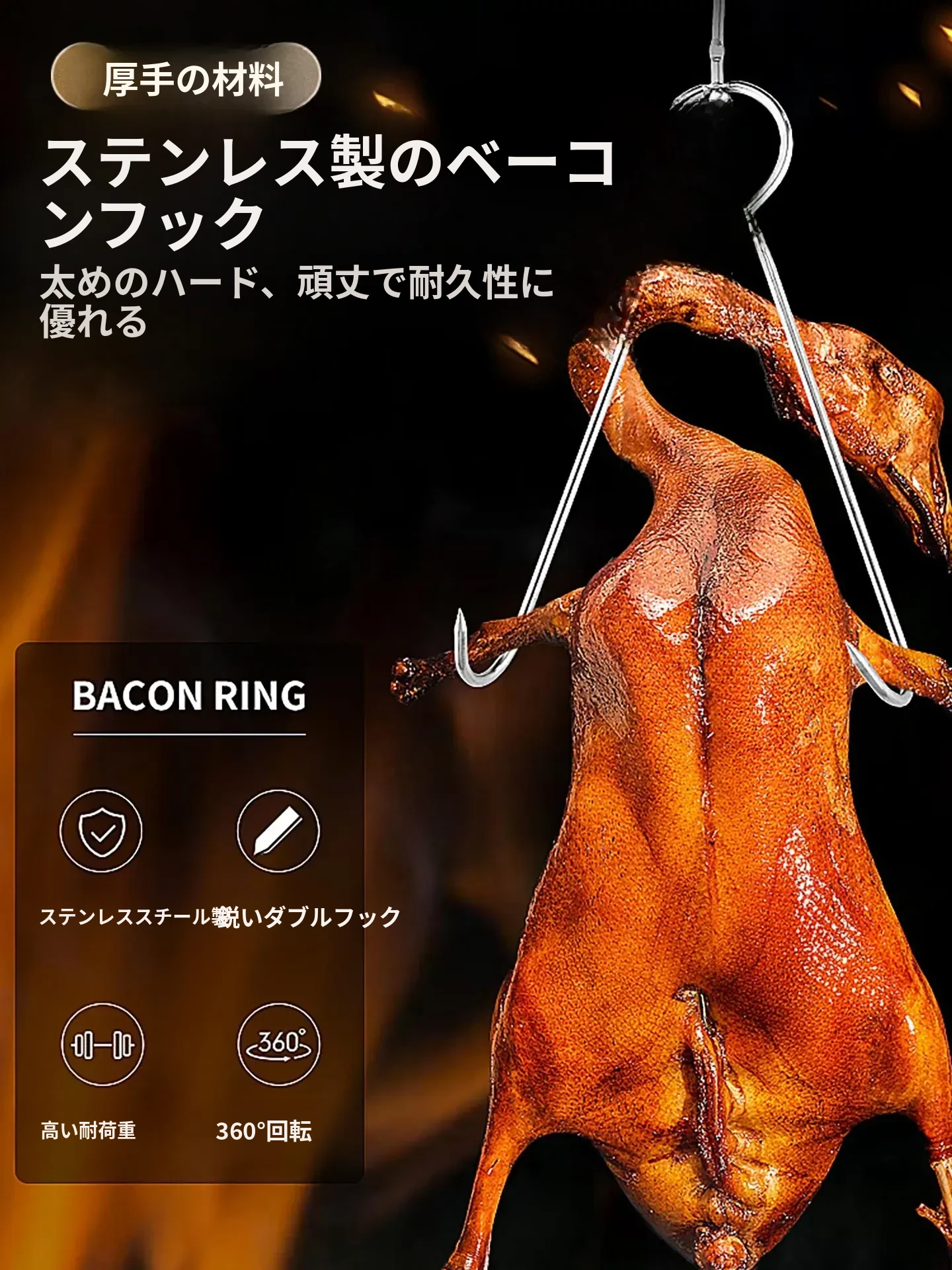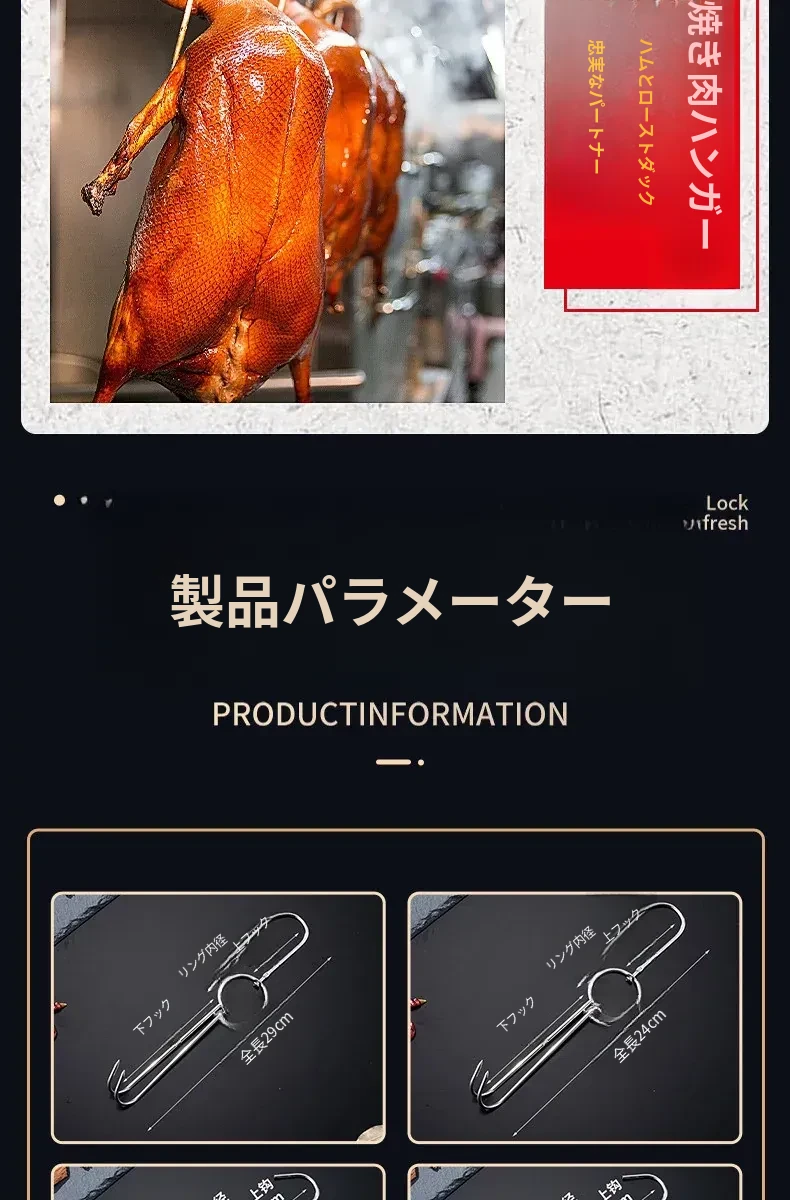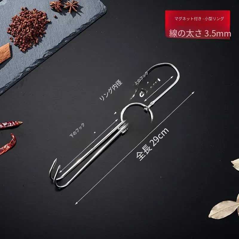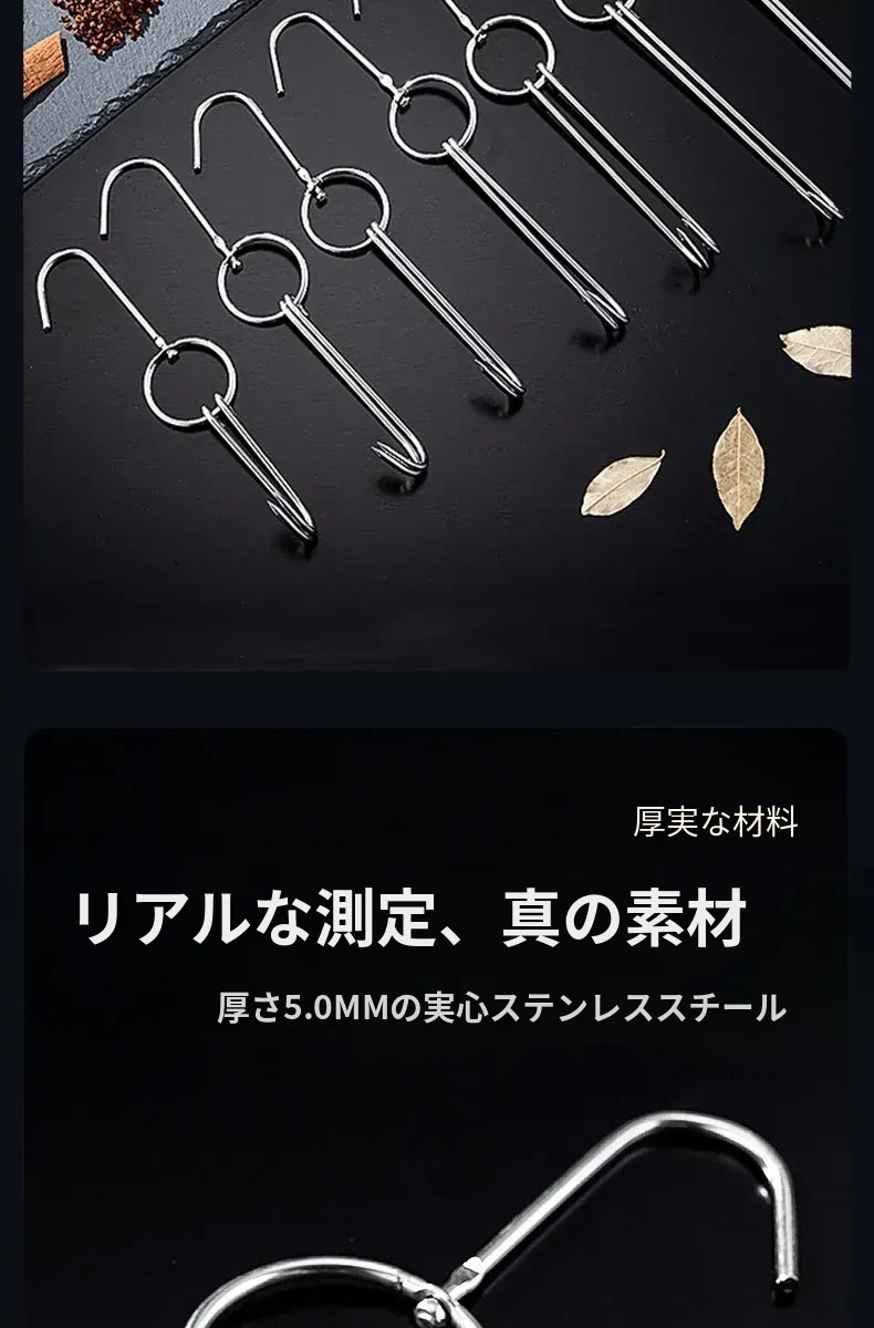 焼き鴨・チャーシュー専用!S型ステンレス製肉干しフック - 大型・太型・尖った先端で、ソーセージや豚肉をしっかり固定。耐久性抜群で、家庭での本格的な乾燥・燻製作りをサポートします!