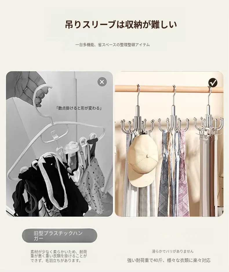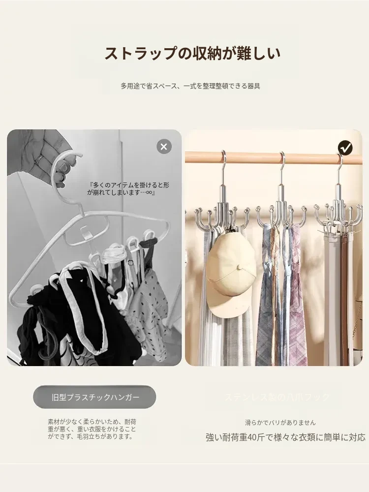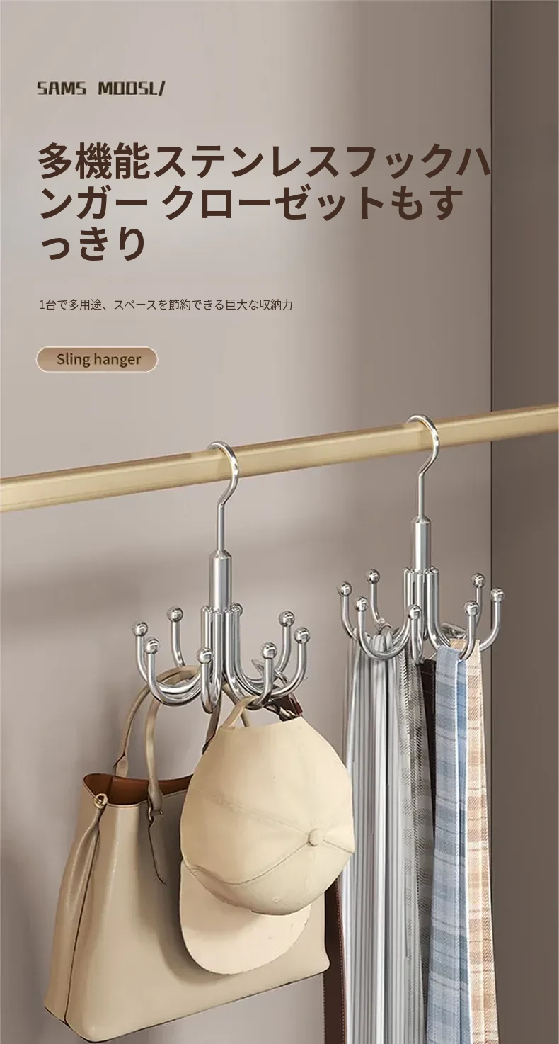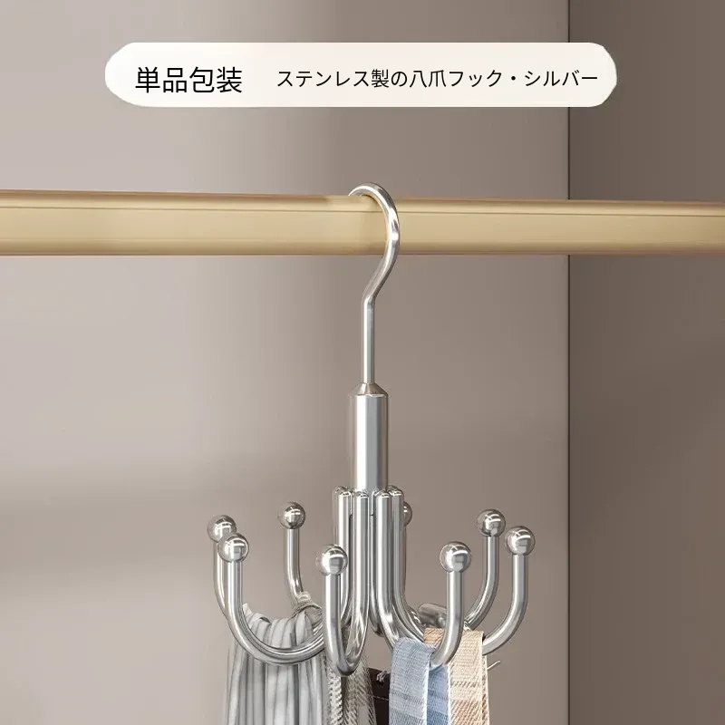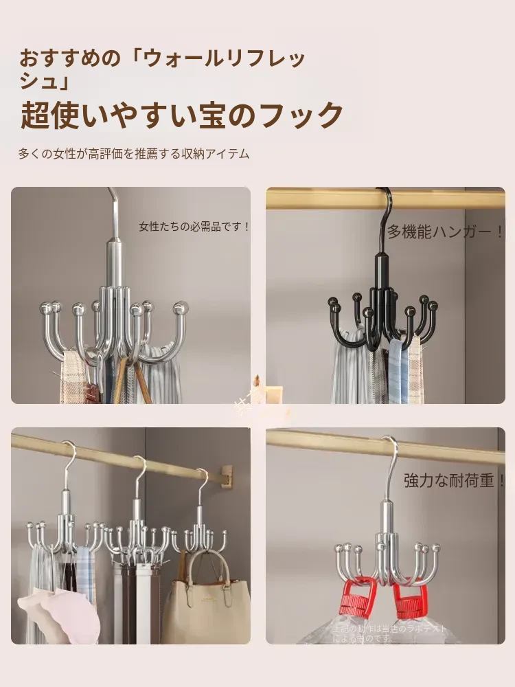 穴あけ不要!ステンレス製フック付き多機能ハンガー - バッグや衣類の収納に最適な回転式フック!家の整理整頓を簡単に実現する便利アイテム!