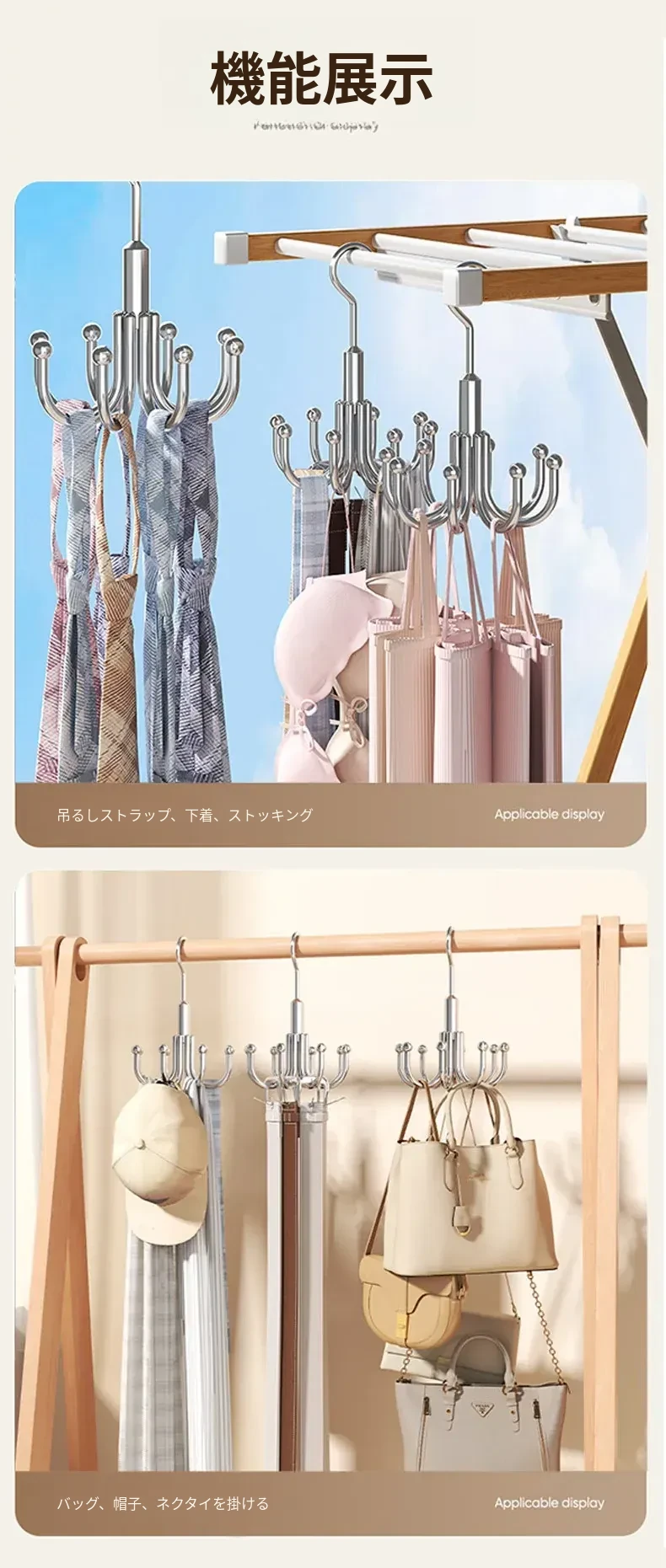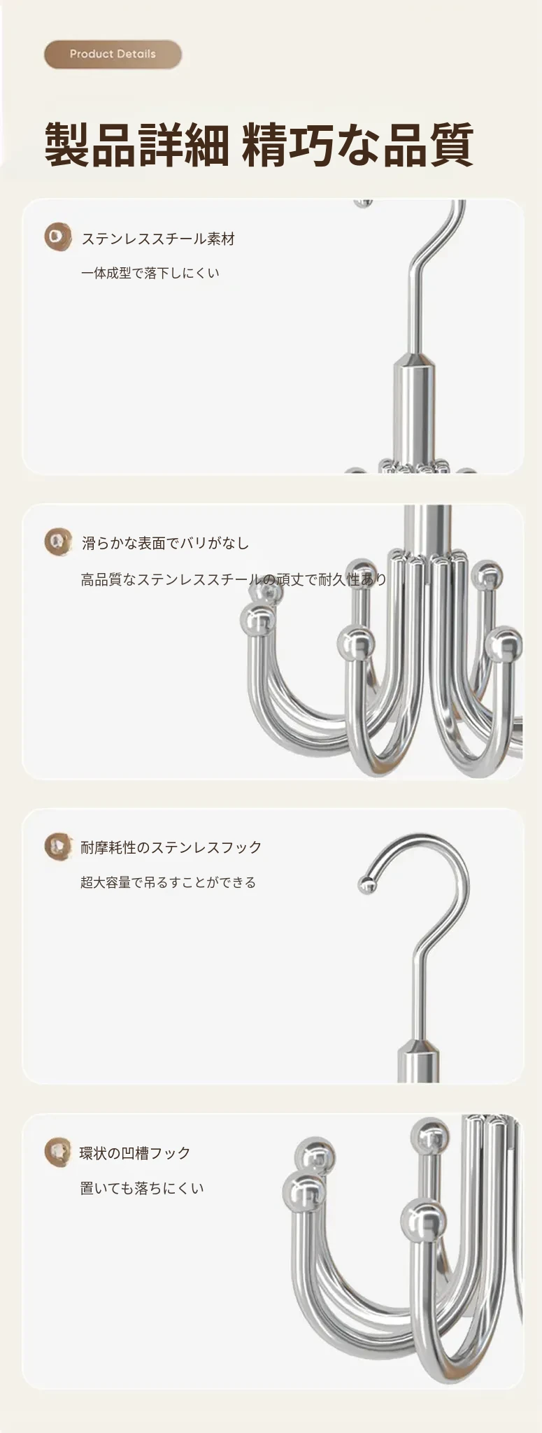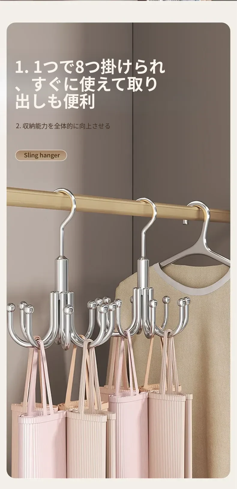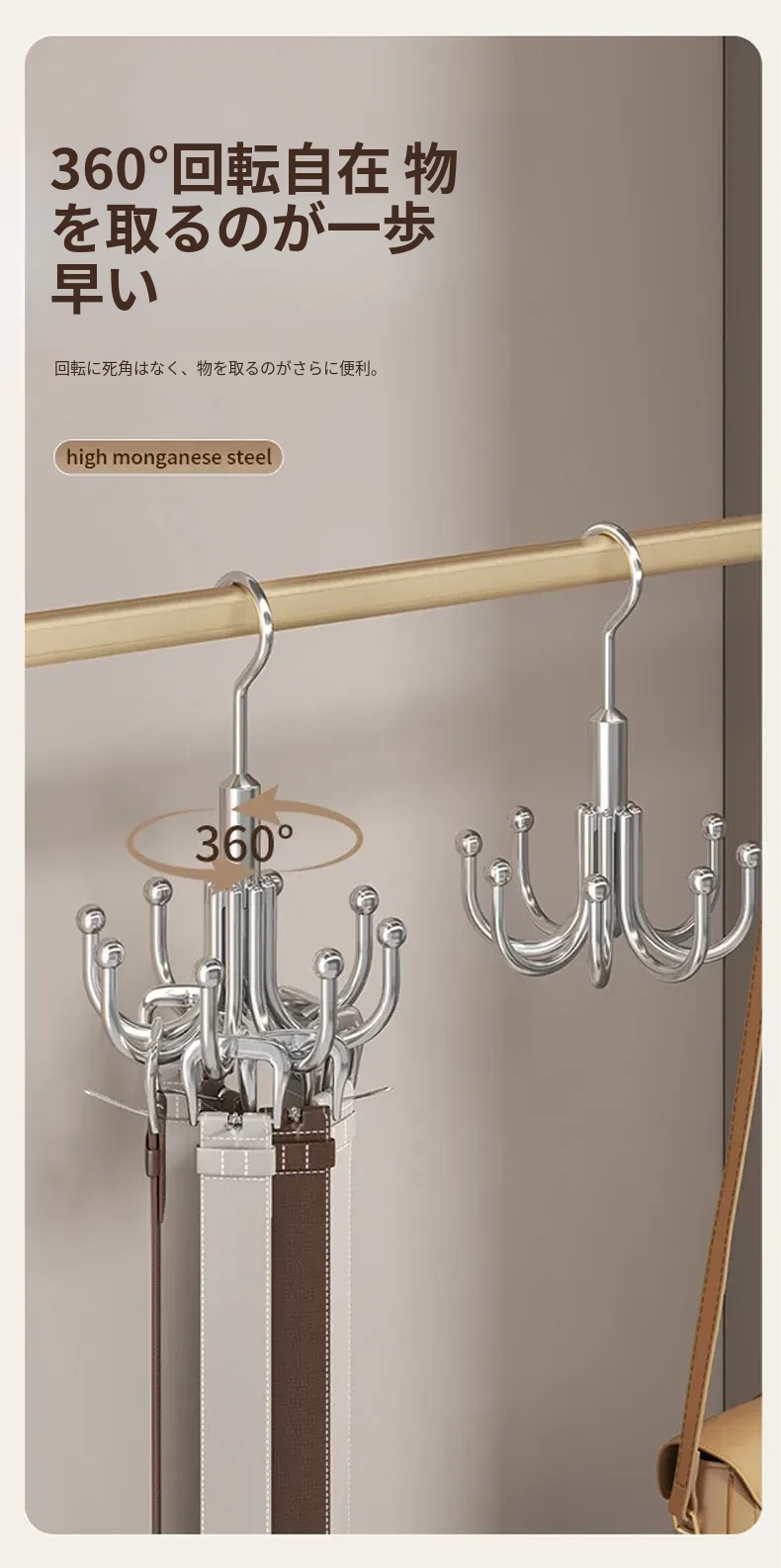 穴あけ不要!ステンレス製フック付き多機能ハンガー - バッグや衣類の収納に最適な回転式フック!家の整理整頓を簡単に実現する便利アイテム!