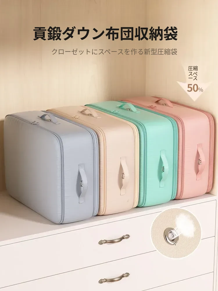 真空圧縮収納袋|衣類・布団整理に最適!旅行や引越しにも便利な特別仕様のダウンジャケット・毛布用パッキングバッグ!すっきり収納でスペースを有効活用!