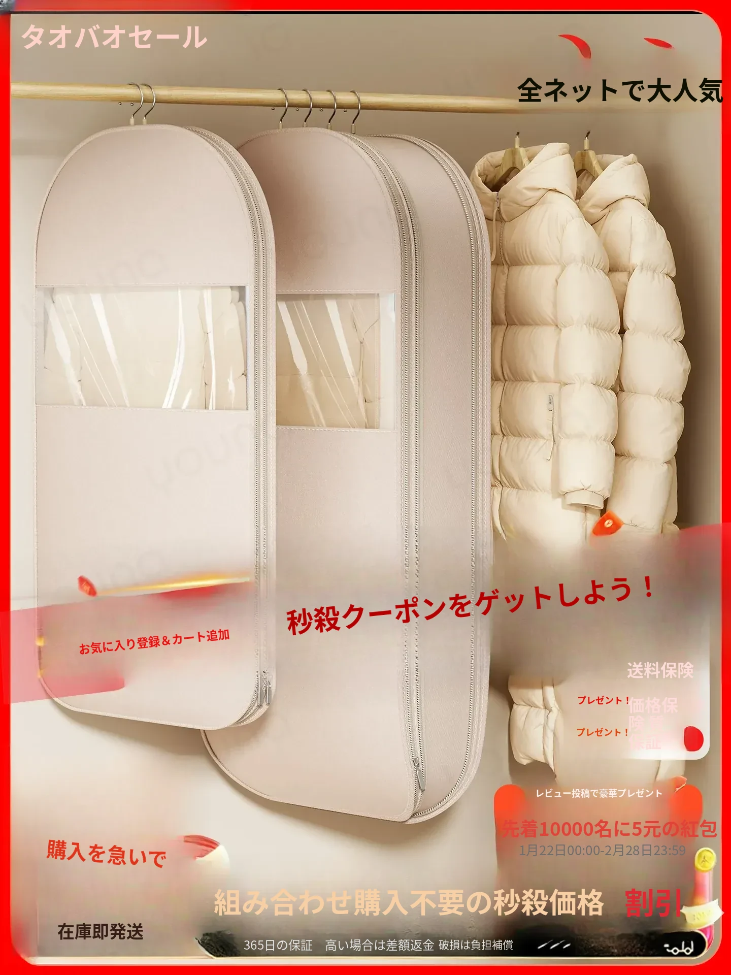 衣類を守る!羽毛服用防塵カバー - 家庭用ハンガー式、衣類収納に最適なコート・ジャケット用圧縮バッグ!クローゼットをスッキリ整理!