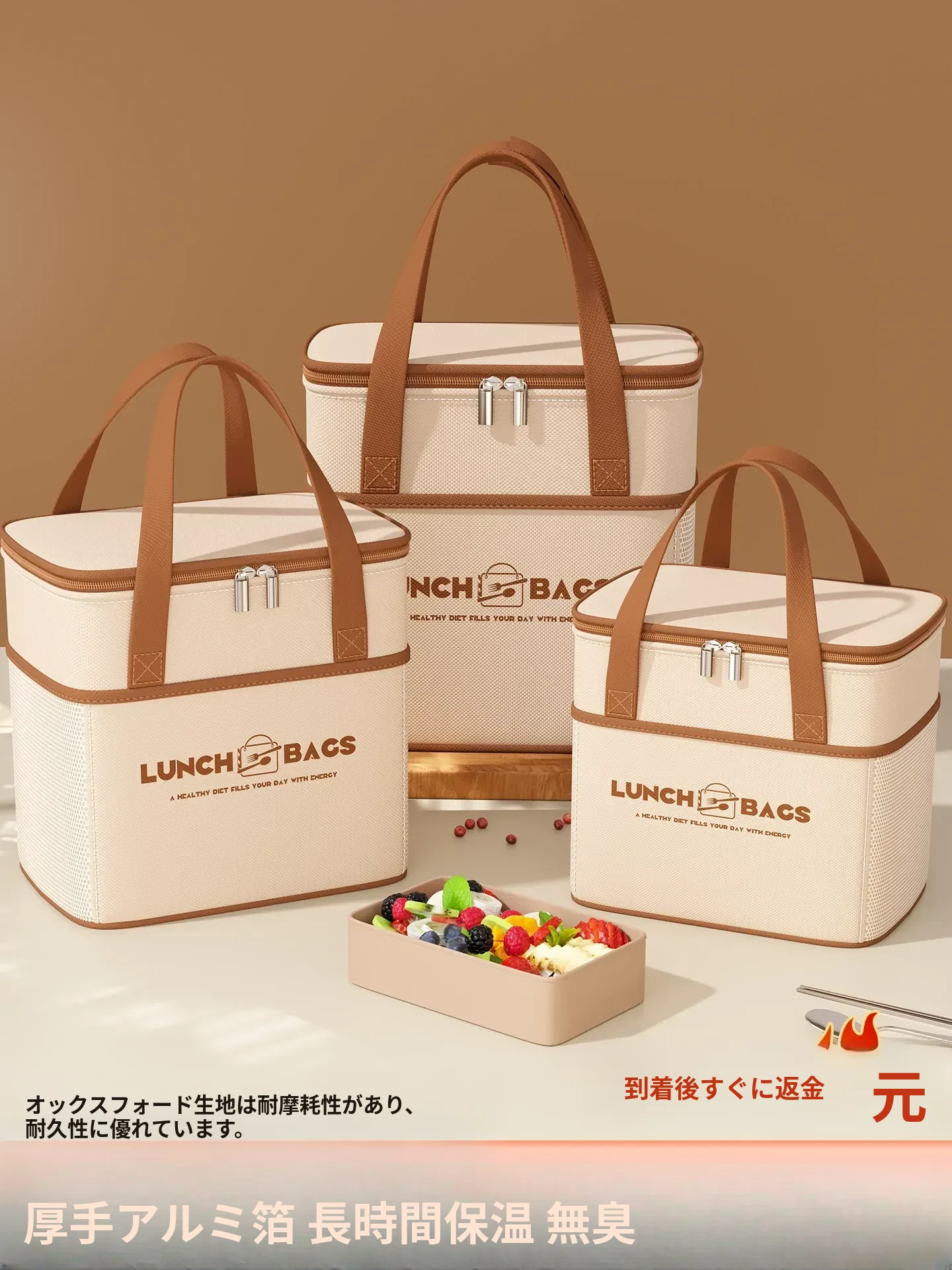 保温性抜群!厚手アルミフォイルランチバッグ - 学生や働く方に最適な防水お弁当袋、持ち運び便利でランチをもっとおいしく!