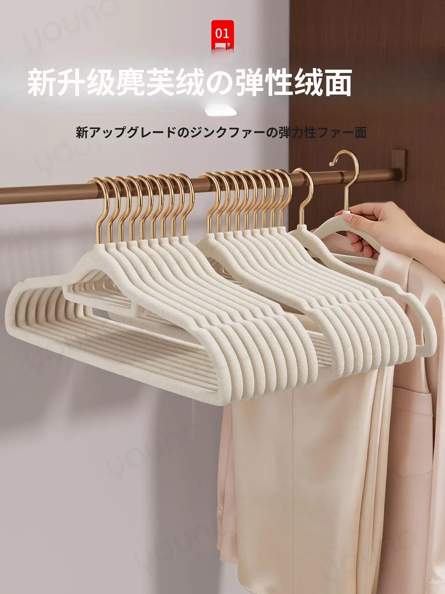 2026年新作!日本製のフロッキー衣類ハンガー - 家庭用、肩のラインを守る滑り止めデザインで、厚めの麂皮フロック加工。衣類を優しく支え、型崩れを防ぎます。おしゃれな収納でクローゼットもスッキリ!