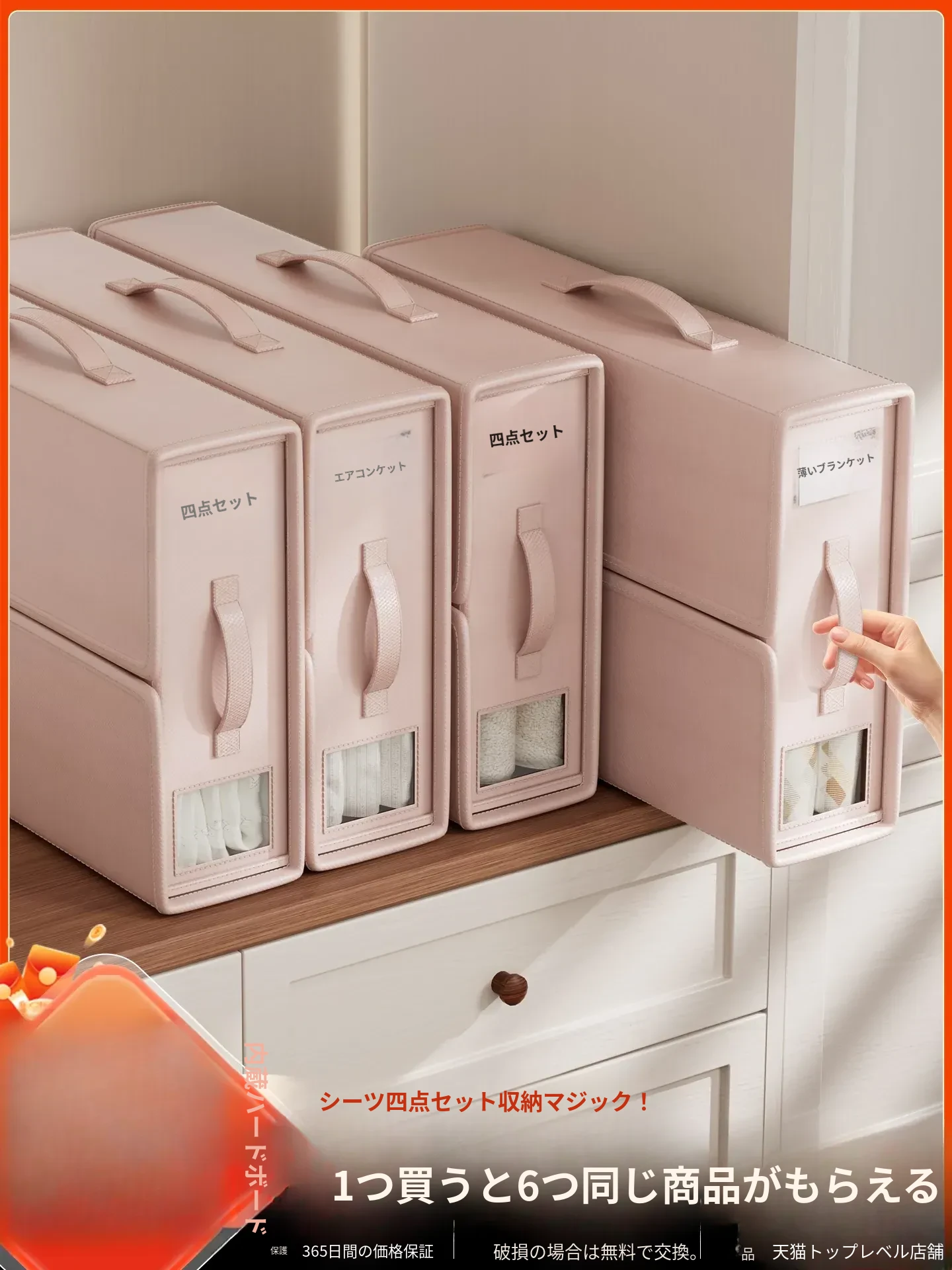 1つで4つの収納!厚手衣類収納ボックス 家庭用クローゼット 衣類整理バスケット 折りたたみ布団収納バッグの必需品!