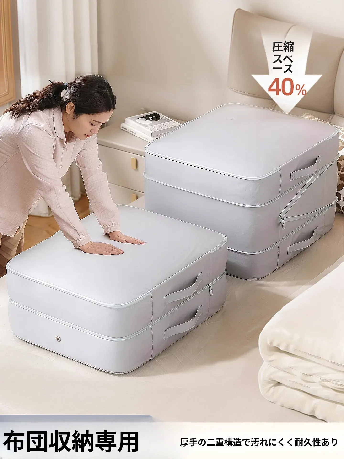 収納力抜群!ふんわり羽毛布団や厚手の毛布もスッキリ整理できるカバー付き収納バッグ。衣類や小物の整理に最適な、家庭用の便利な収納ボックス!