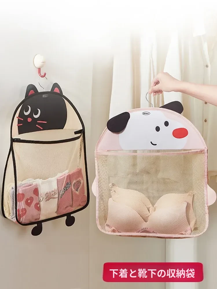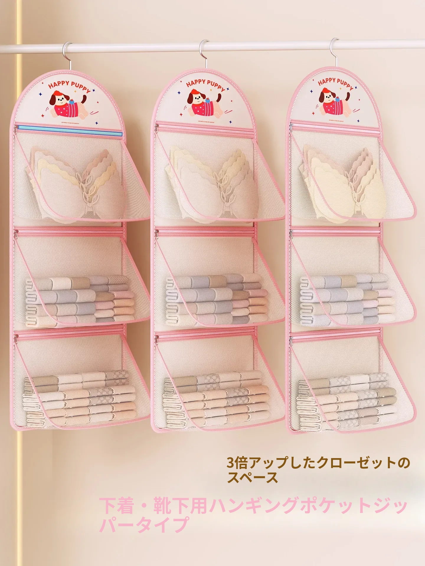 靴下収納ハンギングバッグ|家族に最適な衣類収納|下着やパンツをスッキリ整理!ネットポケットで通気性抜群!寮やベッドサイドにも最適な便利アイテム!