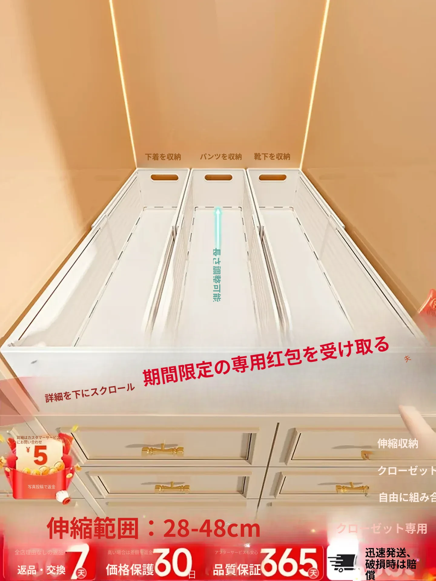 伸縮式衣類収納ボックス - セーターやパンツ、下着をスマートに整理!クローゼットをスッキリさせる、便利な多層設計で衣類の収納が簡単に。あなたの生活空間をもっと快適に!