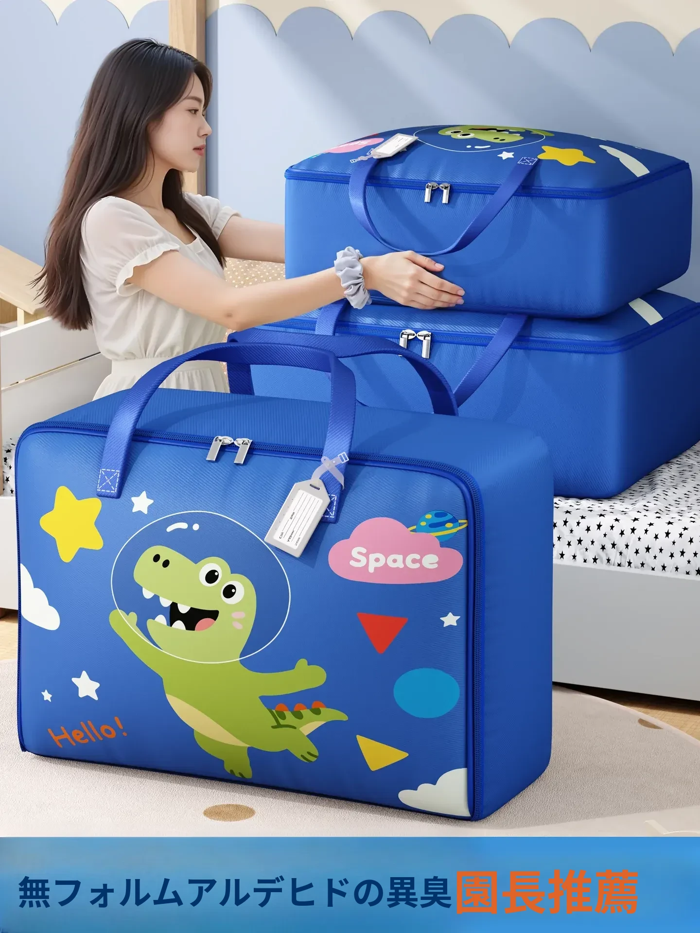 幼稚園用オックスフォード布製大容量布団収納バッグ|赤ちゃん・子供の入学必需品!持ち運び便利で整理整頓も簡単!