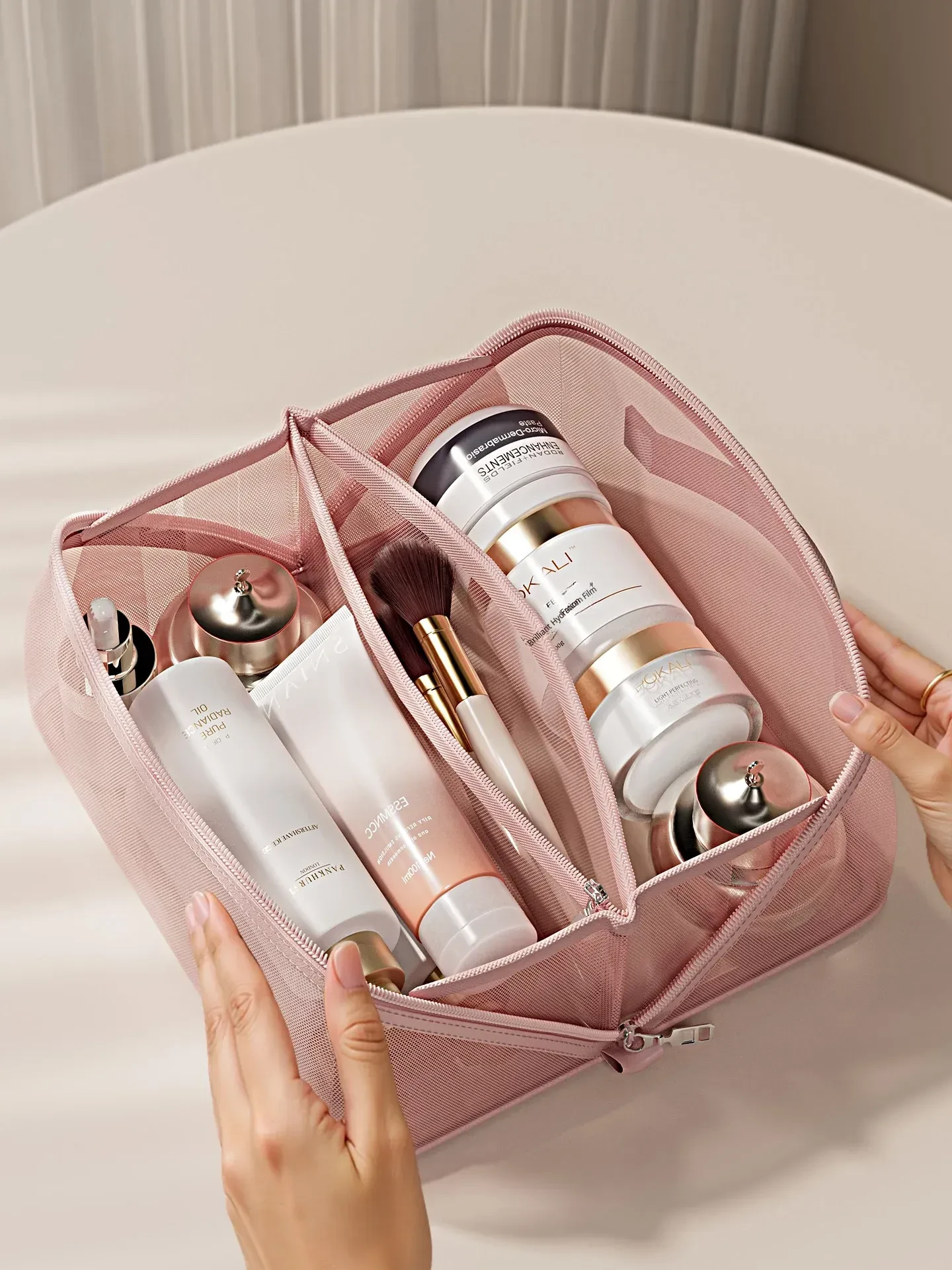 2025 New Luxury Travel Makeup Bag - Large Capacity Portable Cosmetic Organizer with Mesh Design for Women