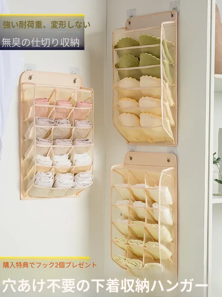 内衣収納ハンギングネットポケット - 下着や靴下を整理整頓!宿舎やクローゼットのドア裏にぴったりの便利アイテム!スペースを有効活用して、生活をもっと快適に!