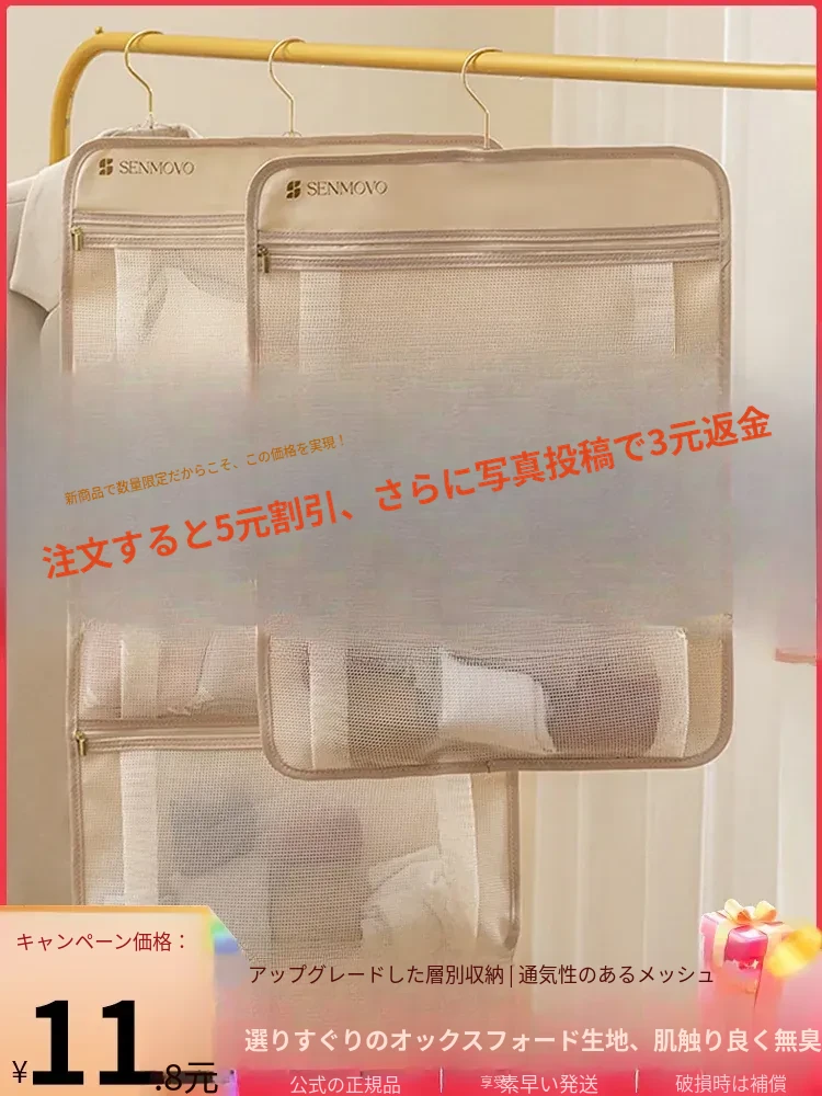 靴下収納ハンギングバッグ|家族に最適な衣類収納|下着やパンツをスッキリ整理!ネットポケットで通気性抜群!寮やベッドサイドにも最適な便利アイテム!