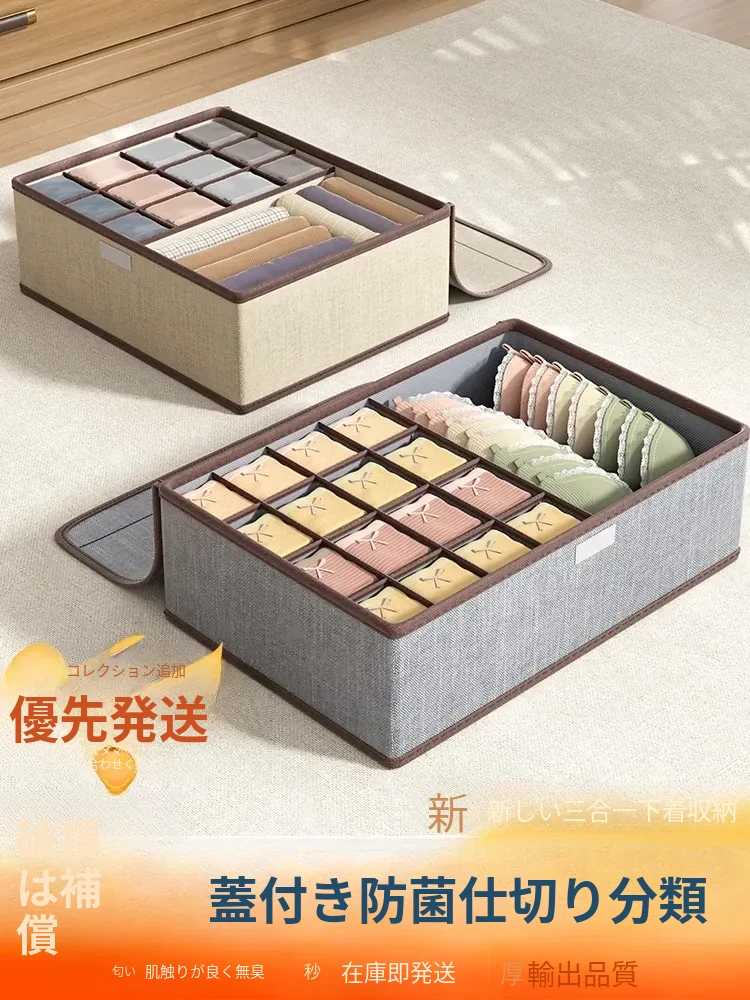 収納力抜群!下着・靴下・ブラジャーがすっきり整理できる3in1引き出し型収納ボックス - 家庭にぴったりな便利アイテム!